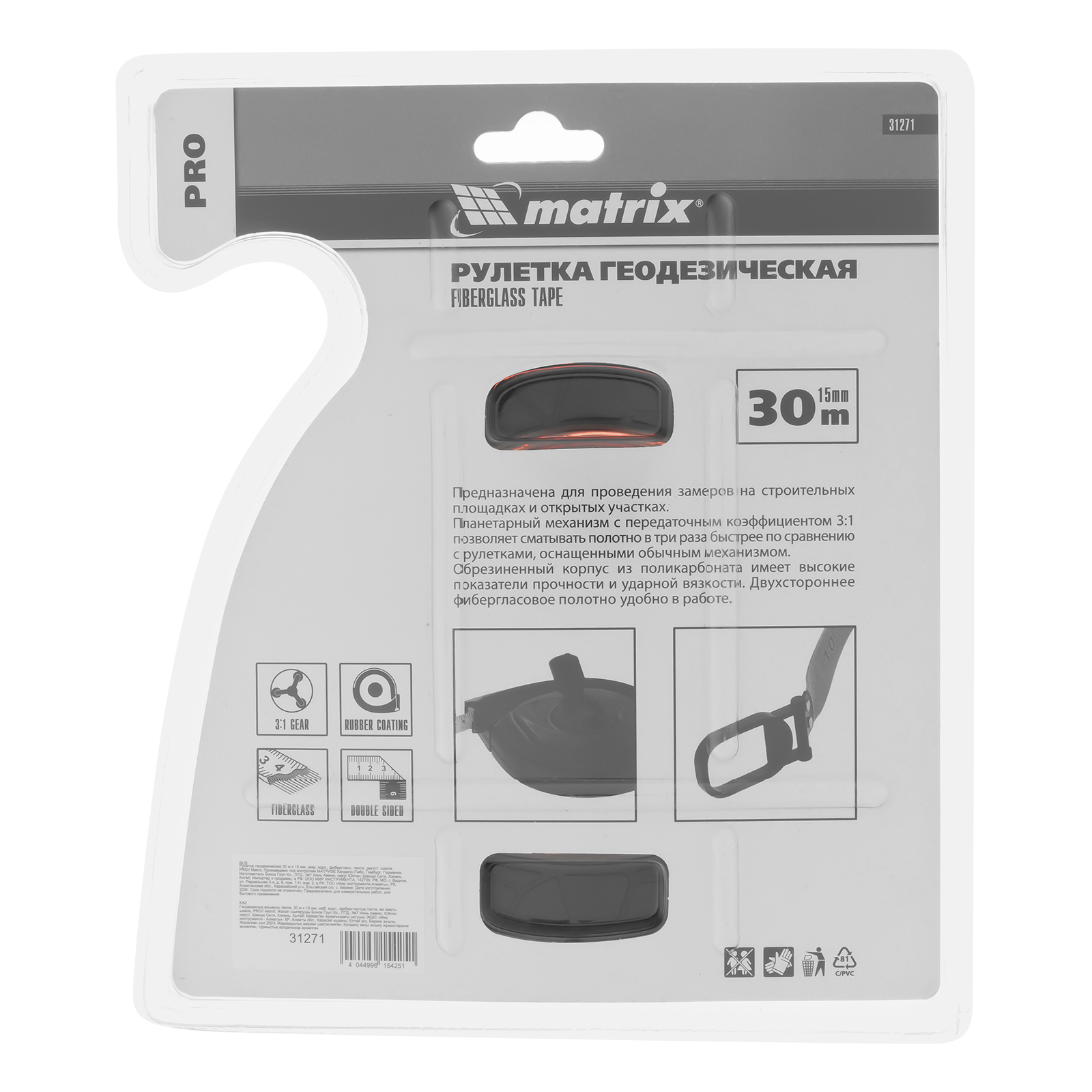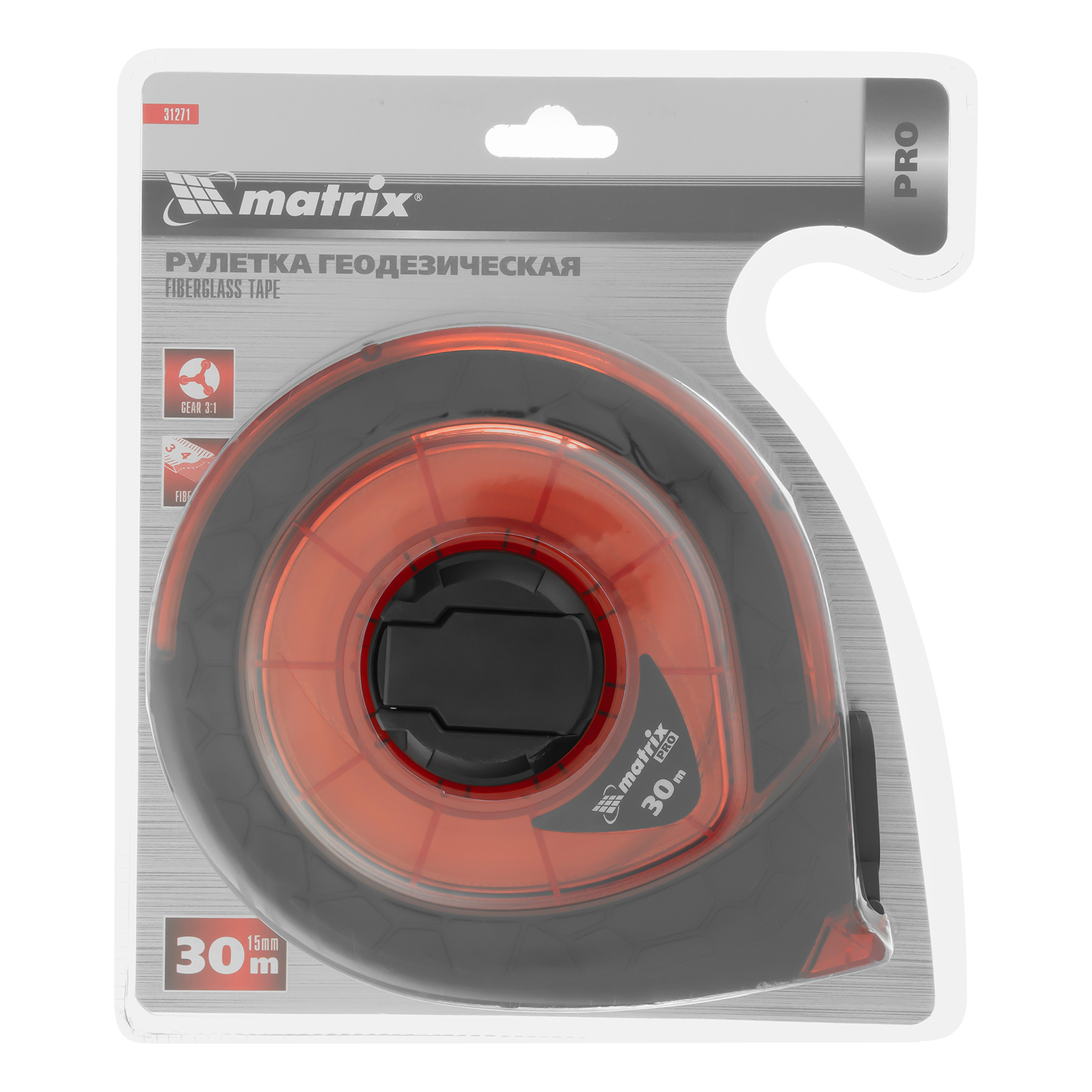 Рулетка геодезическая 30 м х 15 мм, закрытый корпус, фибергласовая лента, двусторонняя шкала, Pro Matrix |