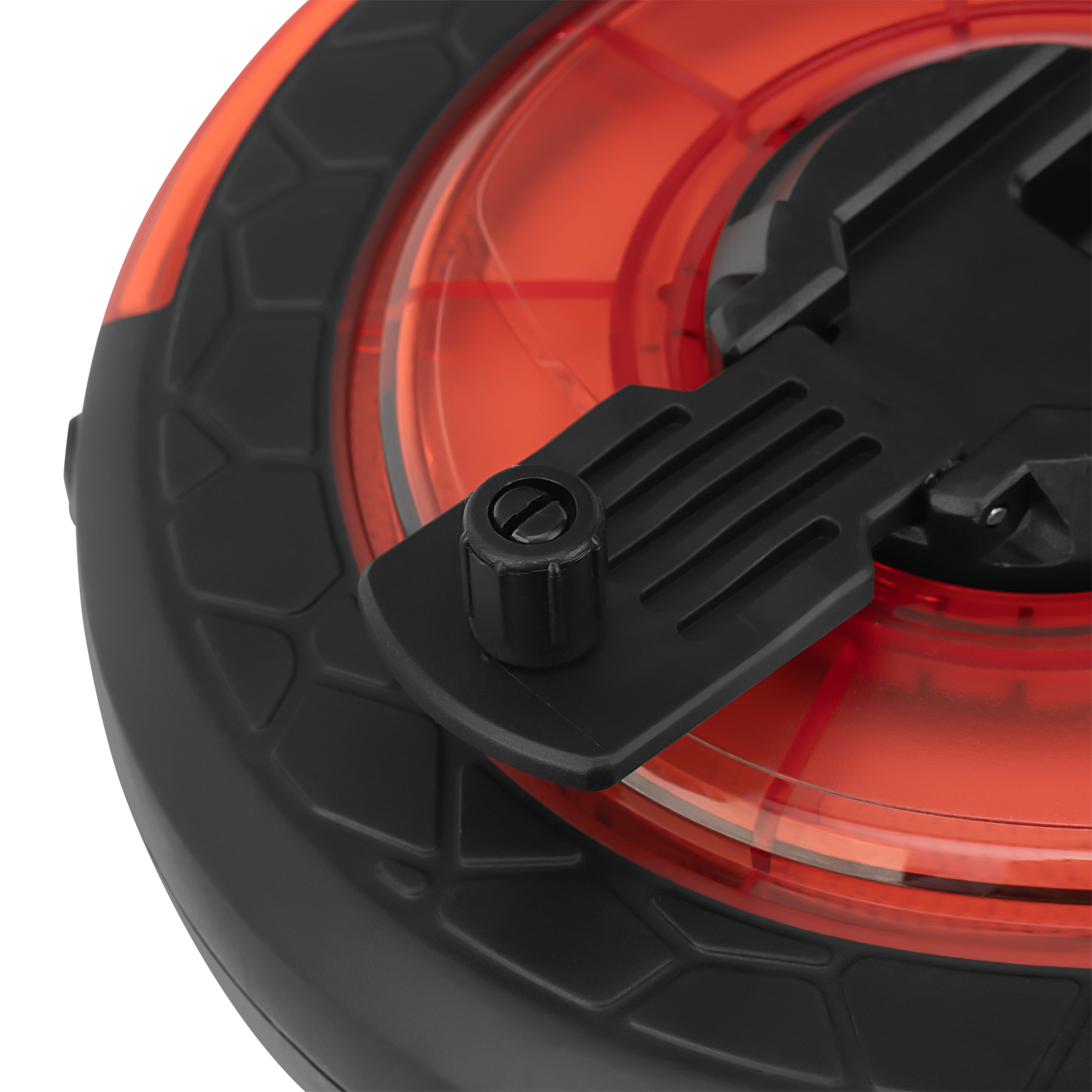 - Высокая скорость сматывания ленты — рулетка оснащена планетарным механизмом с передаточным коэффициентом 3:1, втрое более эффективным по сравнению с обычными механизмами.