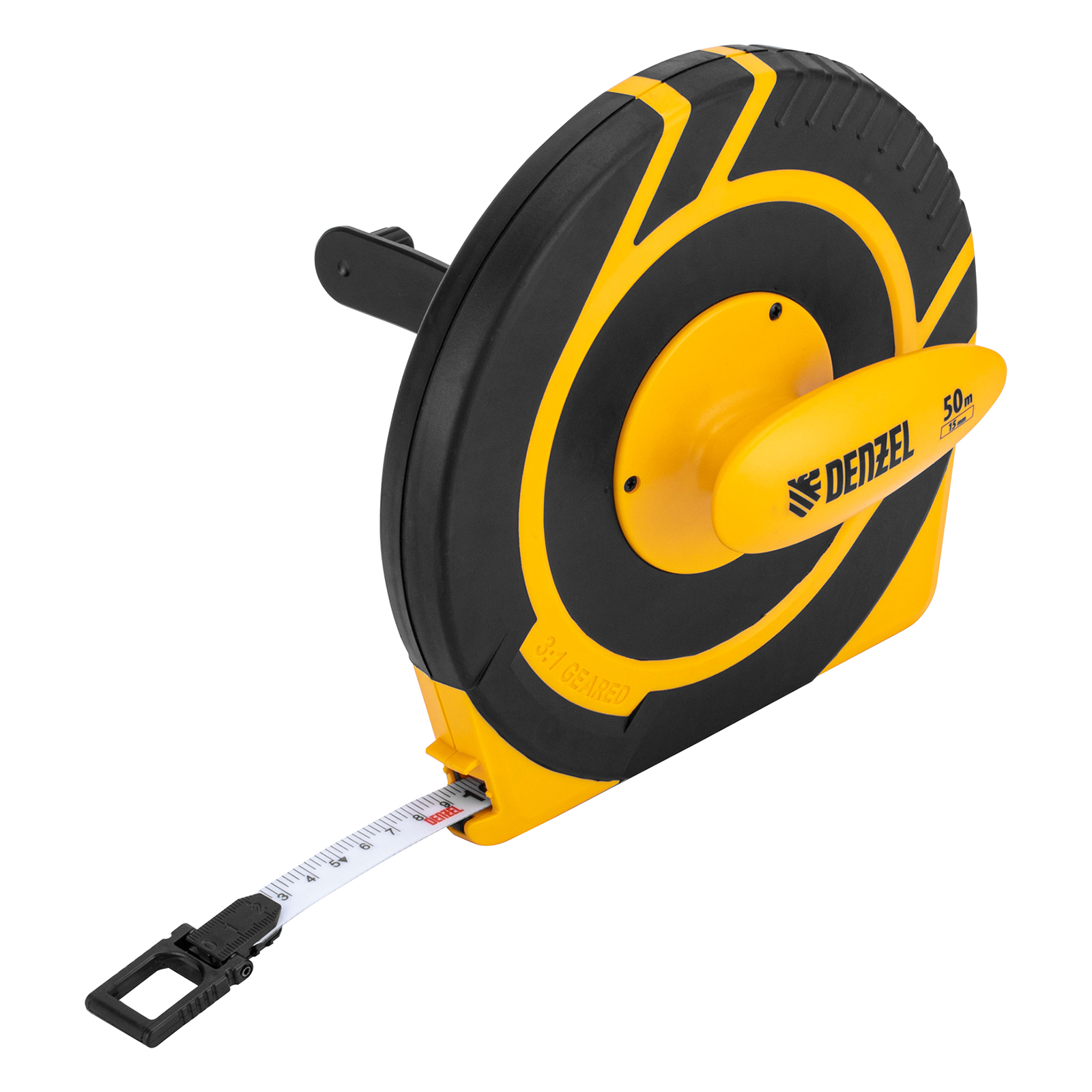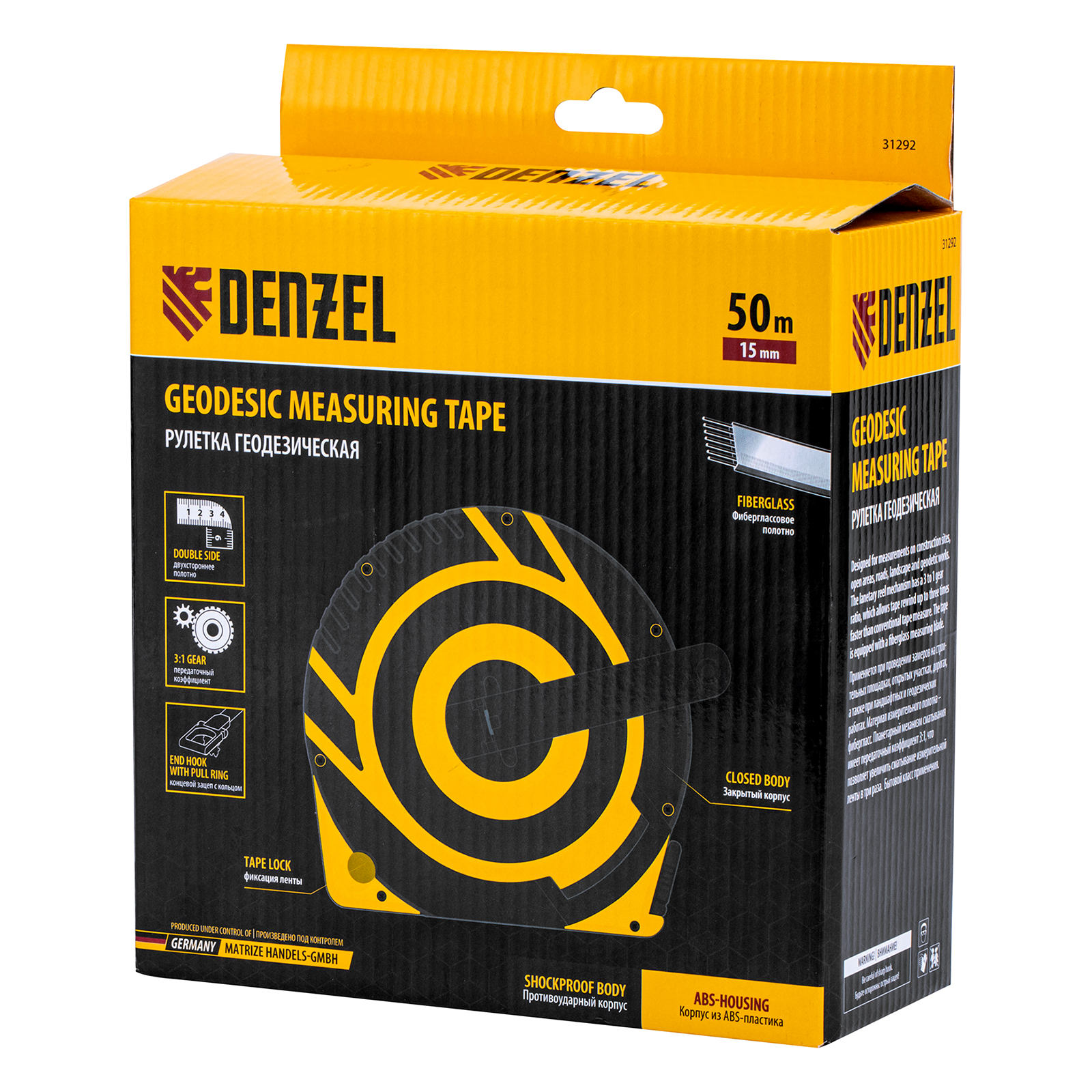 Рулетка геодезическая 50 м х 15 мм, закрытый корпус, фиберглассовая лента Denzel |