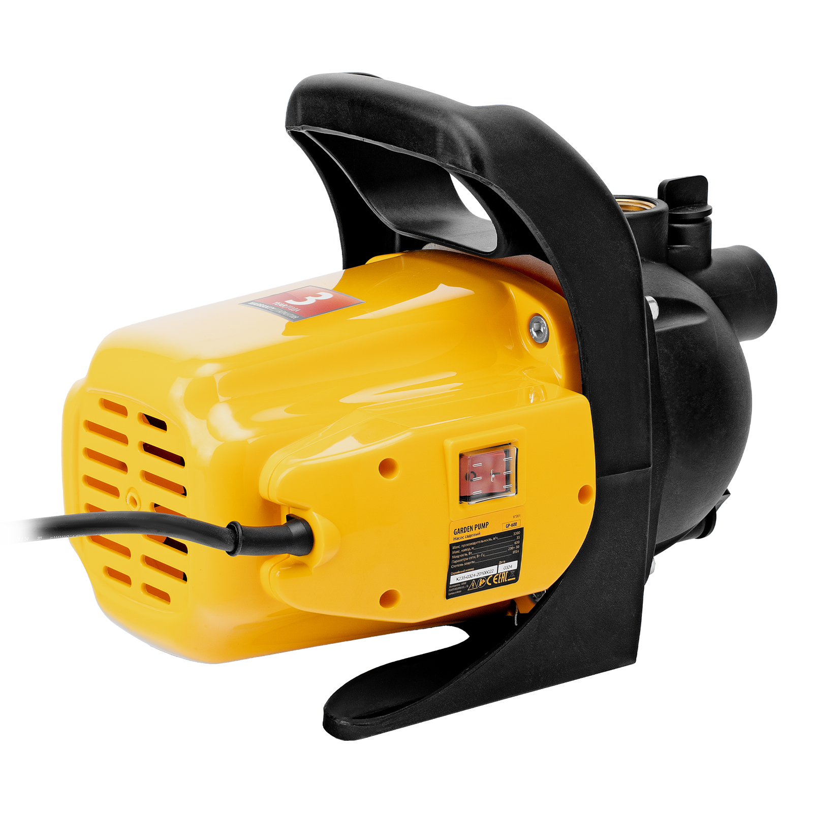 Садовый поверхностный насос GP 600, 600 Вт, 3000 л/ч, подъем 35 м, пластик Denzel