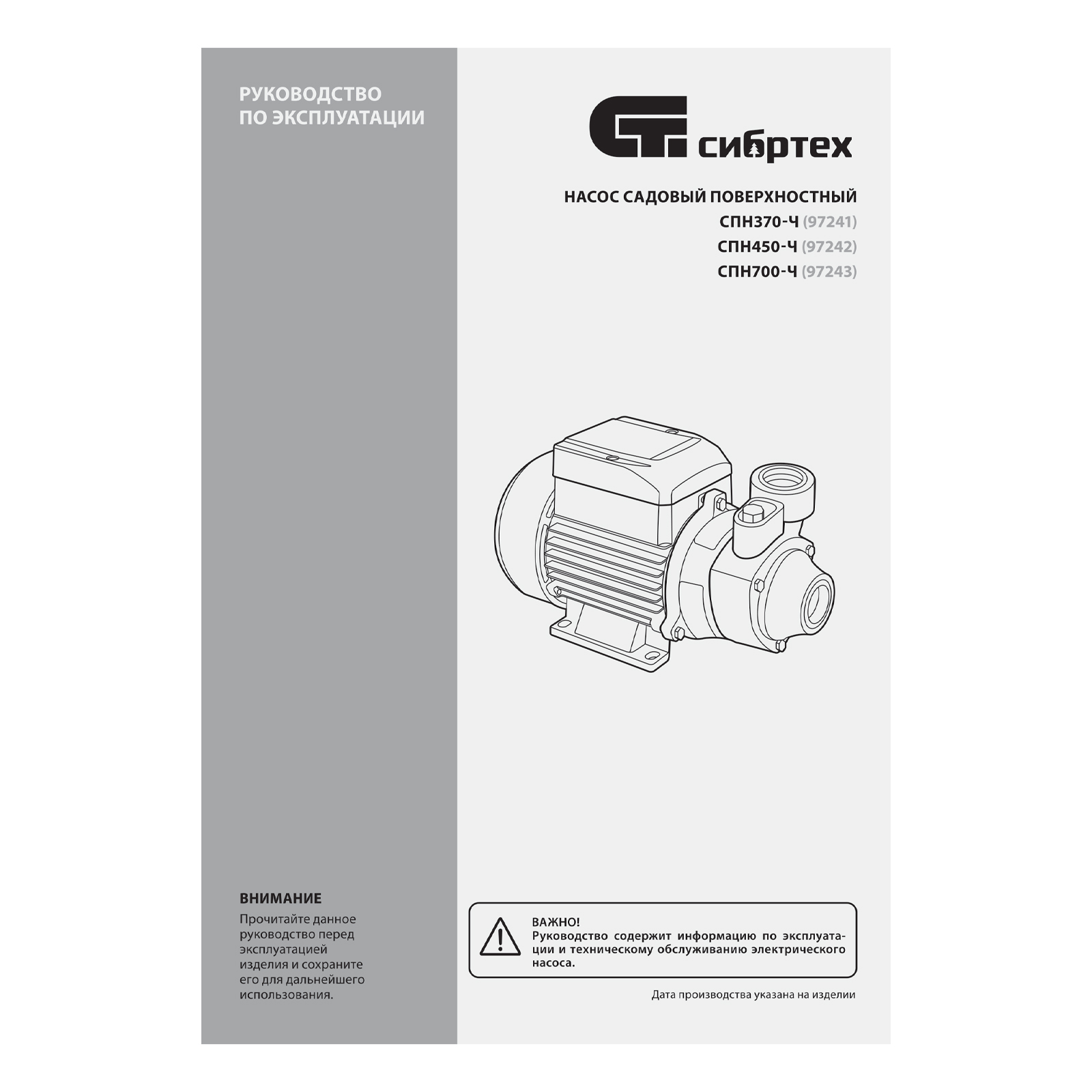 Садовый поверхностный насос СПН450-Ч, 450 Вт, напор 40 м, 2100 л/ч, чугун Сибртех
