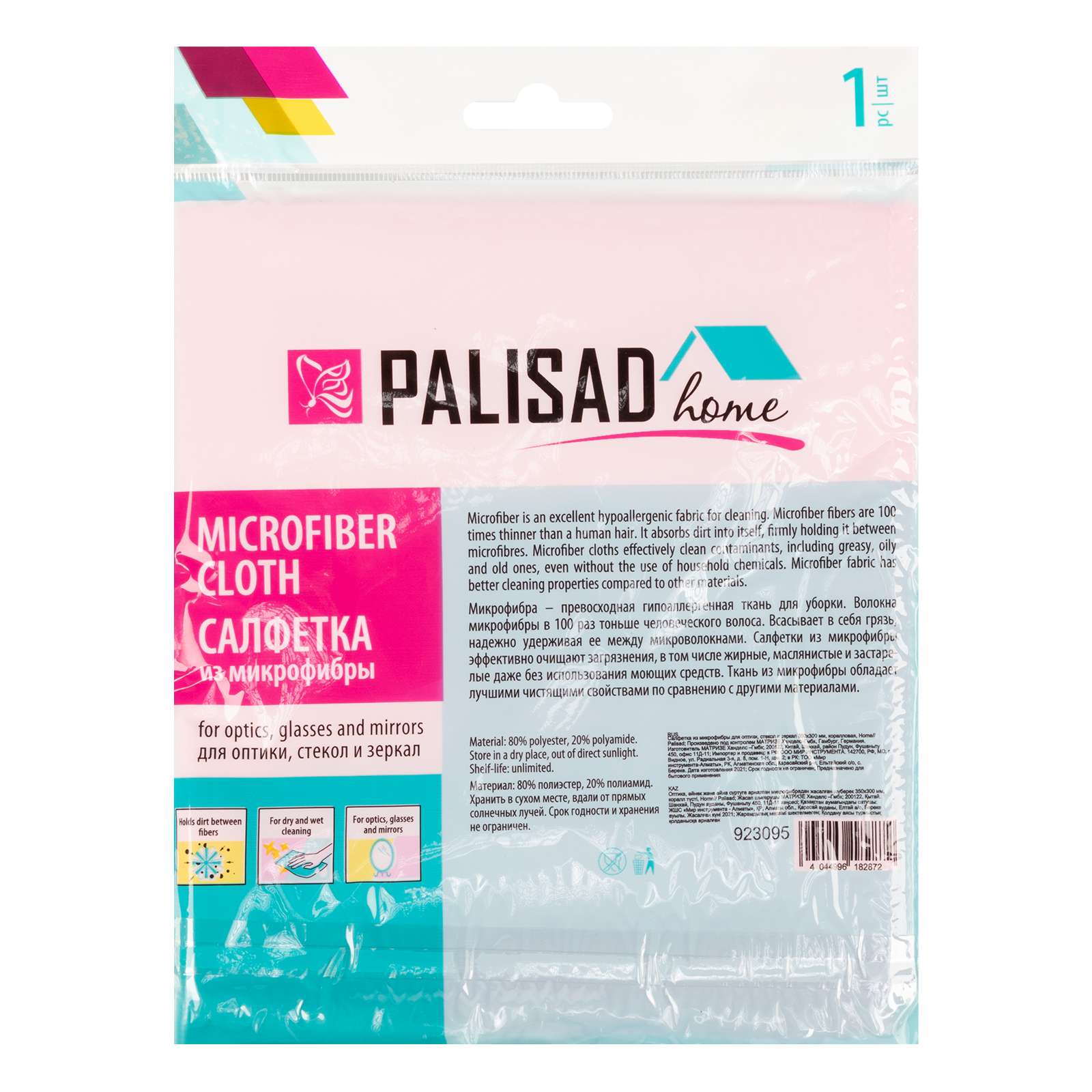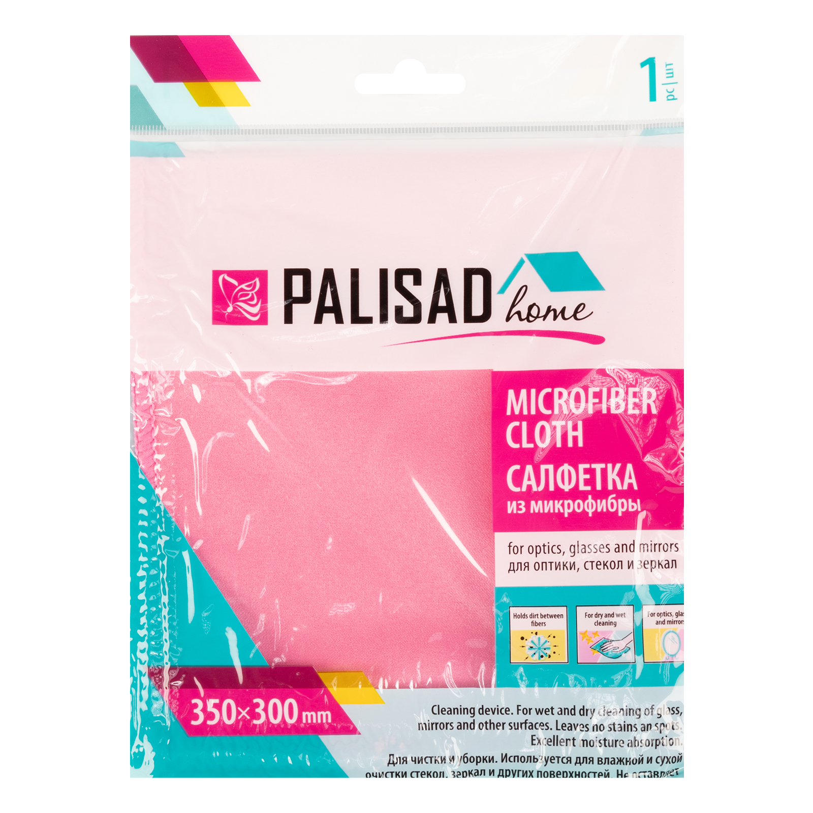 Салфетка из микрофибры для оптики, стекол и зеркал, 350 x 300 мм, коралловая, Home Palisad