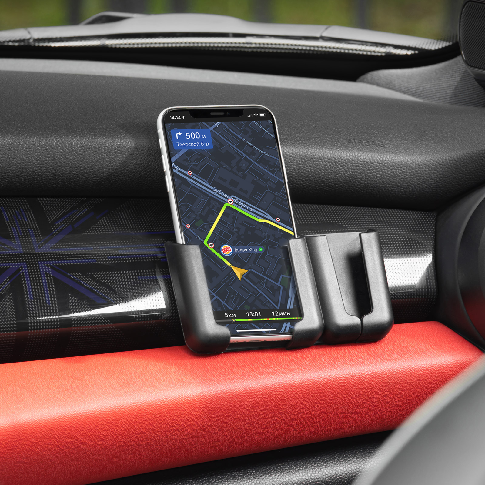 - Надежность — держатель прочно фиксируется благодаря самоклеящейся основе, а после снятия не оставляет следов на приборной панели.