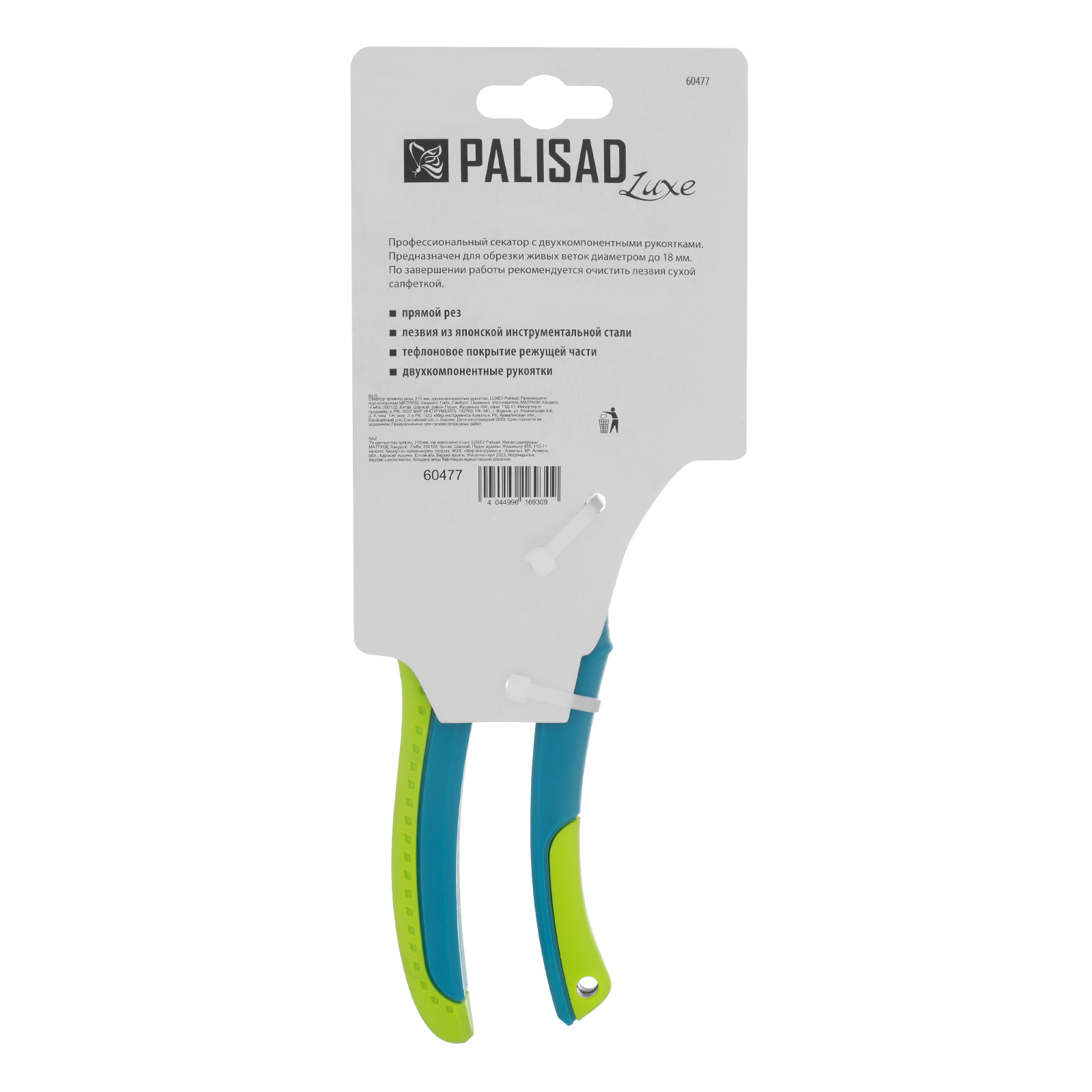 Секатор прямого реза Palisad LUXE 60477 длиной 215 мм, с двухкомпонентными рукоятками, — инструмент для обрезки живых веток диаметром до 18 мм. Рез получается ровным и чистым, поскольку лезвия перемещаются в параллельных плоскостях. При этом вред растению наносится незначительный. Рабочие части выполнены из высококачественной японской инструментальной стали SK-5 и характеризуются максимальной твердостью и износостойкостью. Двухкомпонентные рукоятки из полипропилена не боятся ультрафиолета, поэтому секатор прослужит долго. Инструмент будет полезен для ухода за растительностью на даче и в саду.