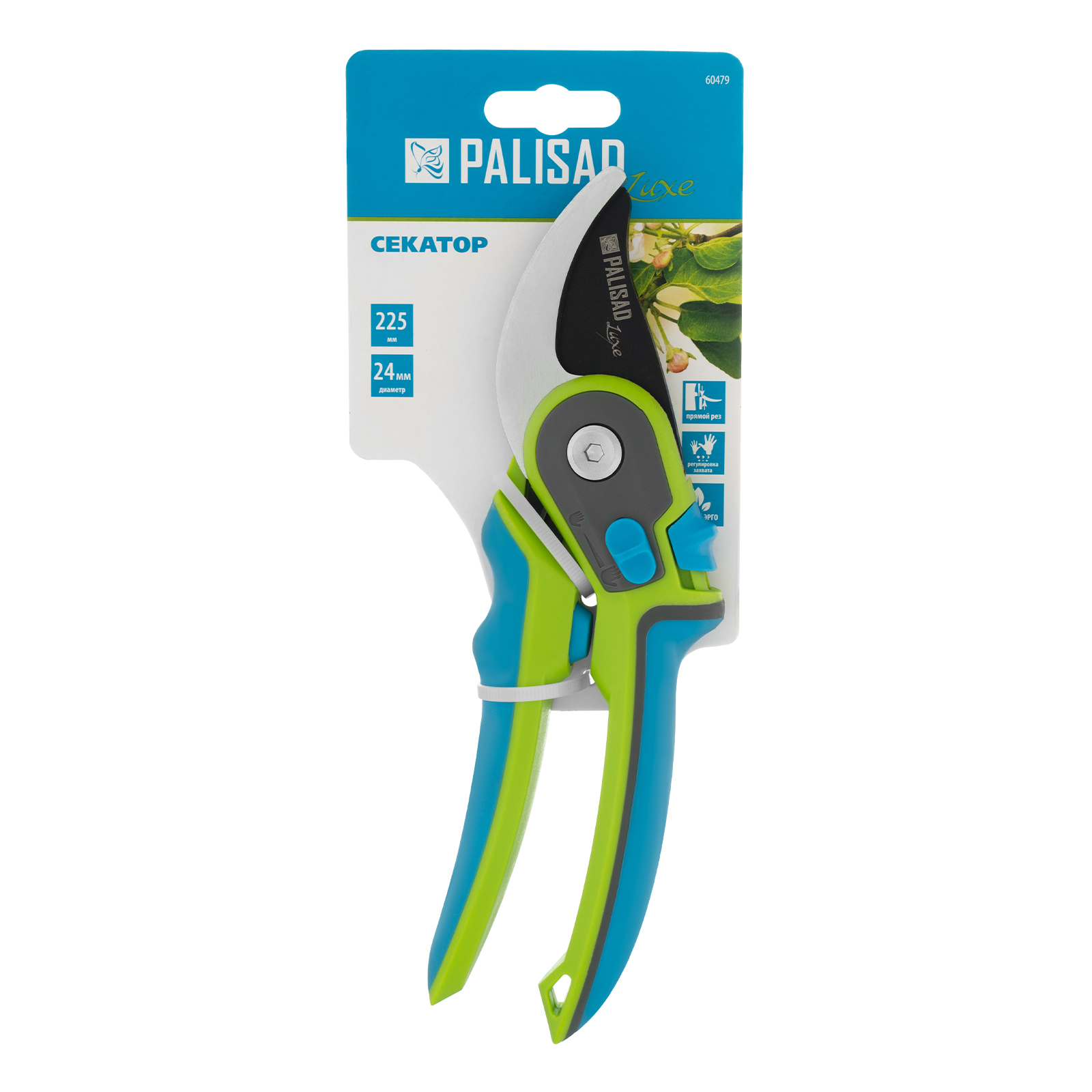 Секатор прямого реза, 225 мм, регулировка захвата, трехкомпонентные рукоятки, Luxe, Palisad
