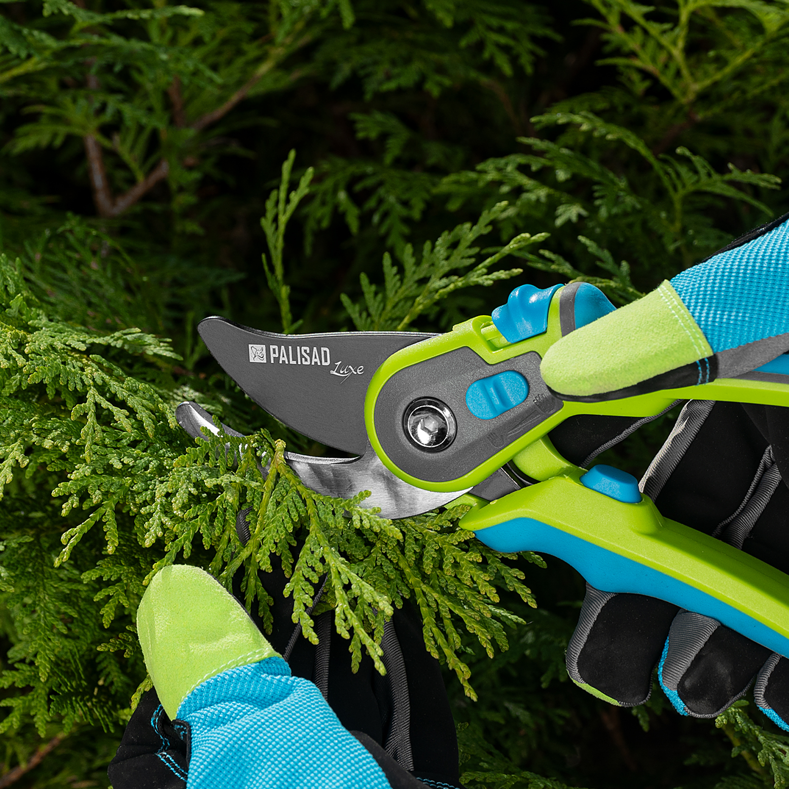 Секатор прямого реза Palisad LUXE 60479 длиной 225 мм, с регулировкой захвата и трехкомпонентными рукоятками, используется для срезания живых веток толщиной до 24 мм. Режущее лезвие перемещается в плоскости, параллельной опорному лезвию, поэтому срез получается ровным и чистым, а ущерб для растения сведен к минимуму. Тефлоновое покрытие лезвия уменьшает трение, а шарнир особой конструкции увеличивает силу сжатия на 10%, что позволяет пользователю прикладывать меньше усилий. Плотность примыкания лезвий можно регулировать при помощи винта. Секатор будет полезен для ухода за растениями на загородном участке.