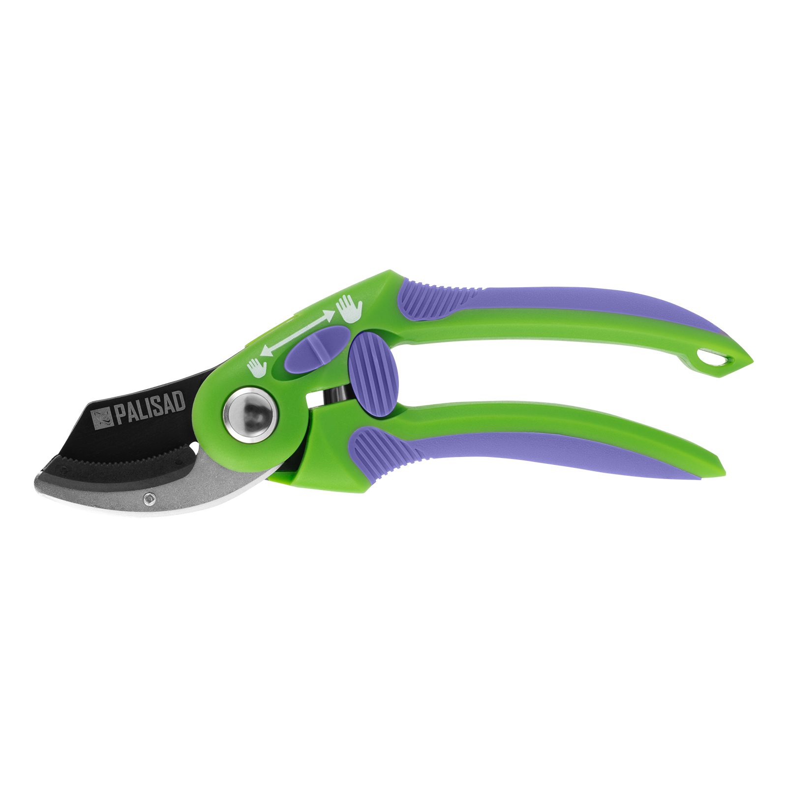 Секатор с наковальней Palisad длиной 215 мм, с двухкомпонентными рукоятками и регулировкой захвата, предназначен для срезания сухих и увядших веток диаметром до 18 мм. Выполнение этой задачи облегчает тефлоновое покрытие режущего лезвия. Благодаря опорной наковальне с зубчатой поверхностью садовый секатор успешно справляется даже с гладкими ветками. Вращая регулировочный винт, можно подогнать лезвия плотнее друг к другу. Инструмент будет полезен на дачном участке.