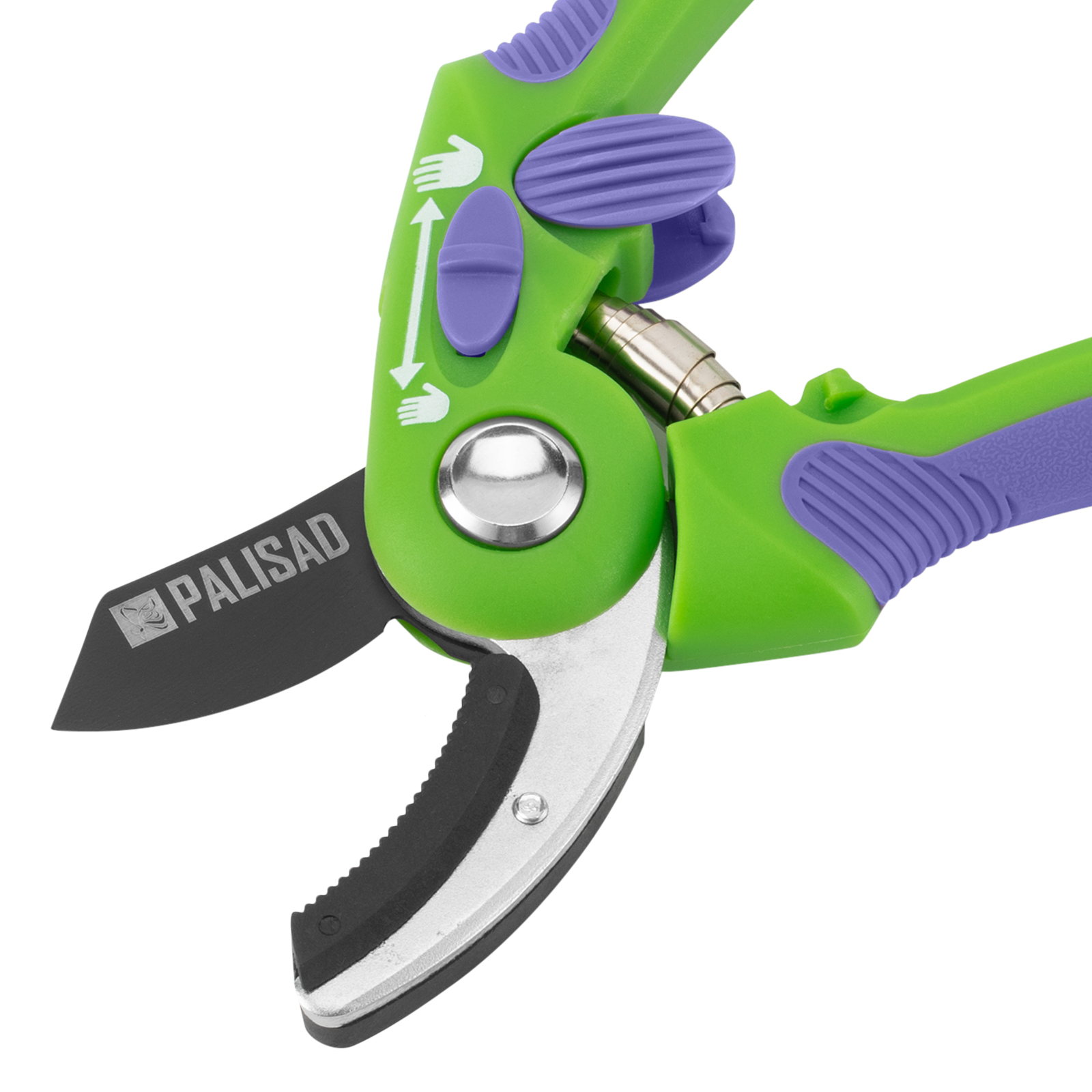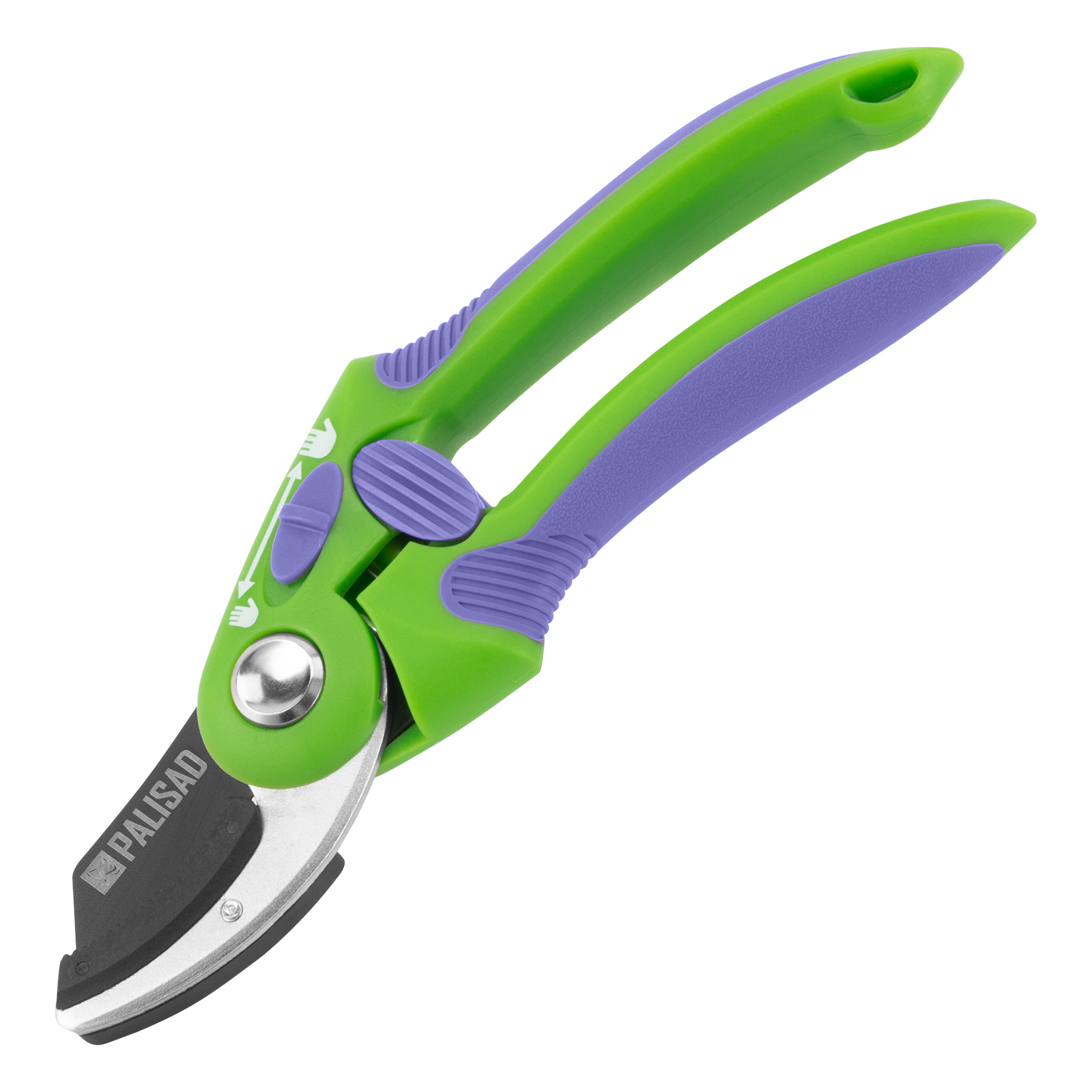 - Регулировка величины захвата — переключатель «большая-малая рука» позволяет устанавливать ширину раскрытия лезвий.