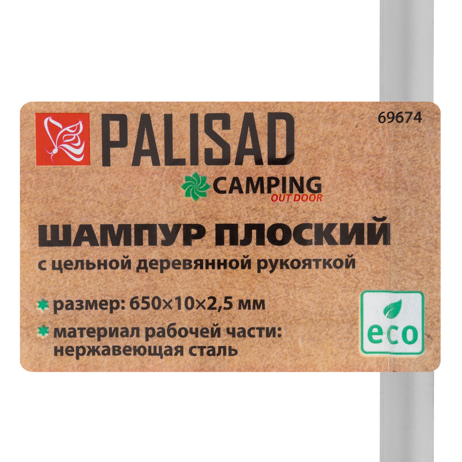 Шампур плоский 650 x 10 x 2,5 мм, с цельной деревянной рукояткой, нержавеющая сталь, Camping Palisad