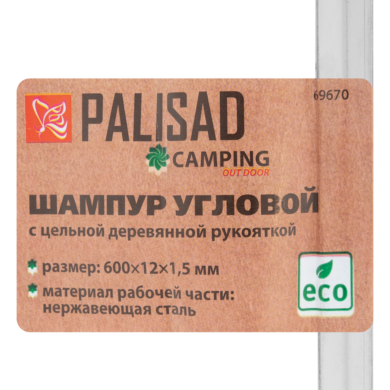 Шампур угловой, 600 x 12 x 1,5 мм, с цельной деревянной рукояткой, нержавеющая сталь, Camping Palisad