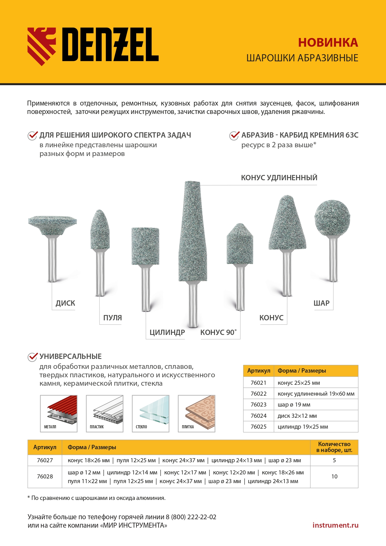 - Универсальность — шарошка подходит для обработки металла, пластика, различных сплавов, стекла, керамической плитки, натурального и искусственного камня.