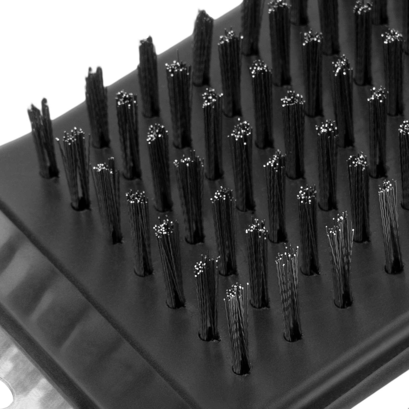 - Долговечность — полипропиленовая рукоятка не разрушается под действием ультрафиолета, щетина из нержавеющей стали устойчива к коррозии.