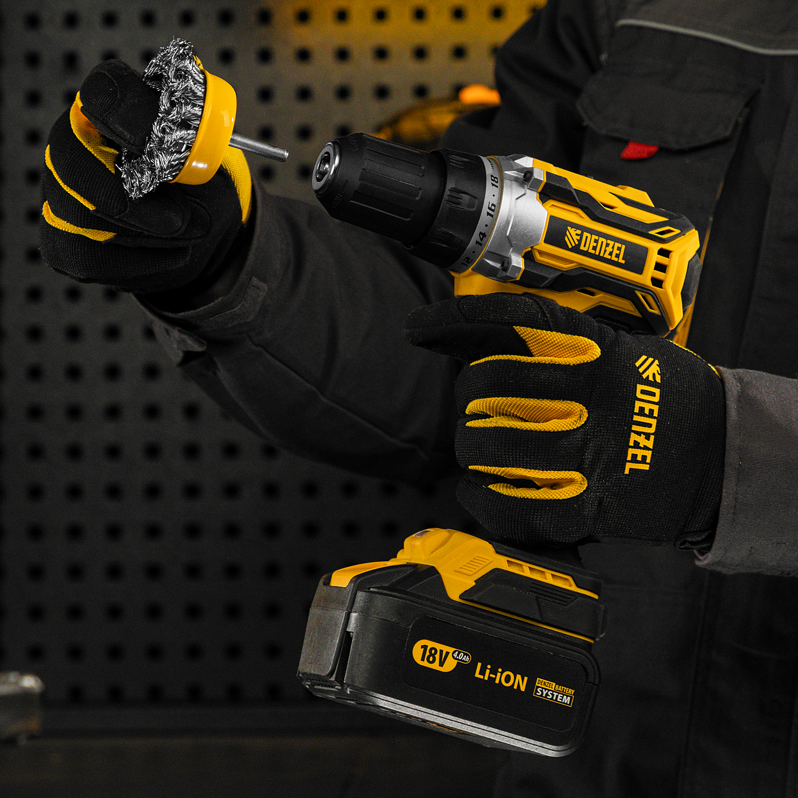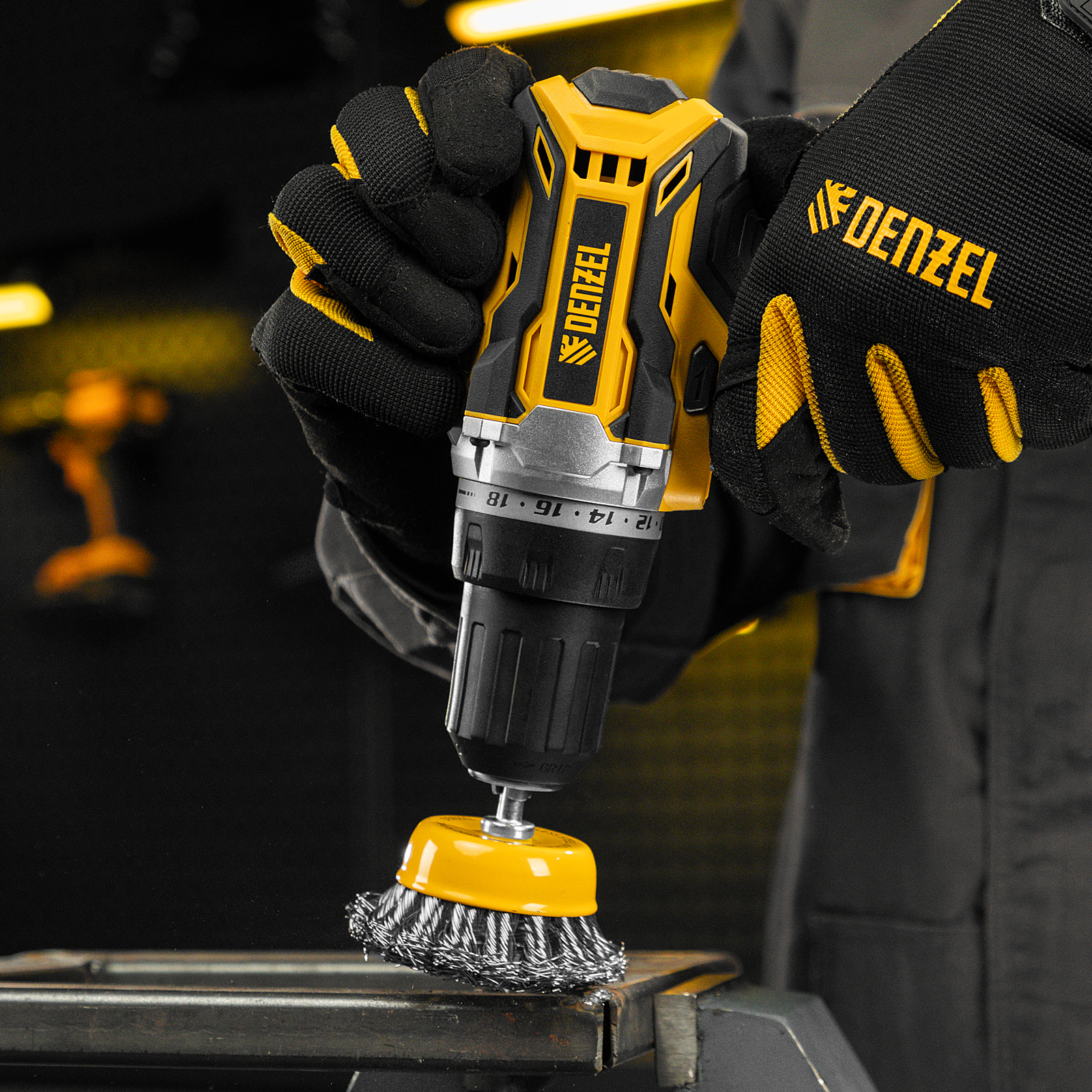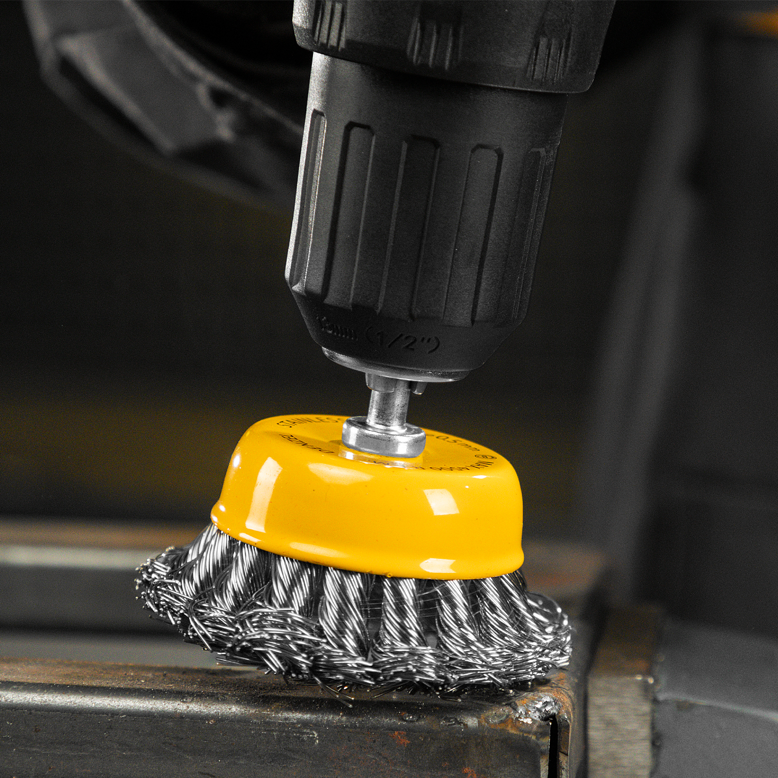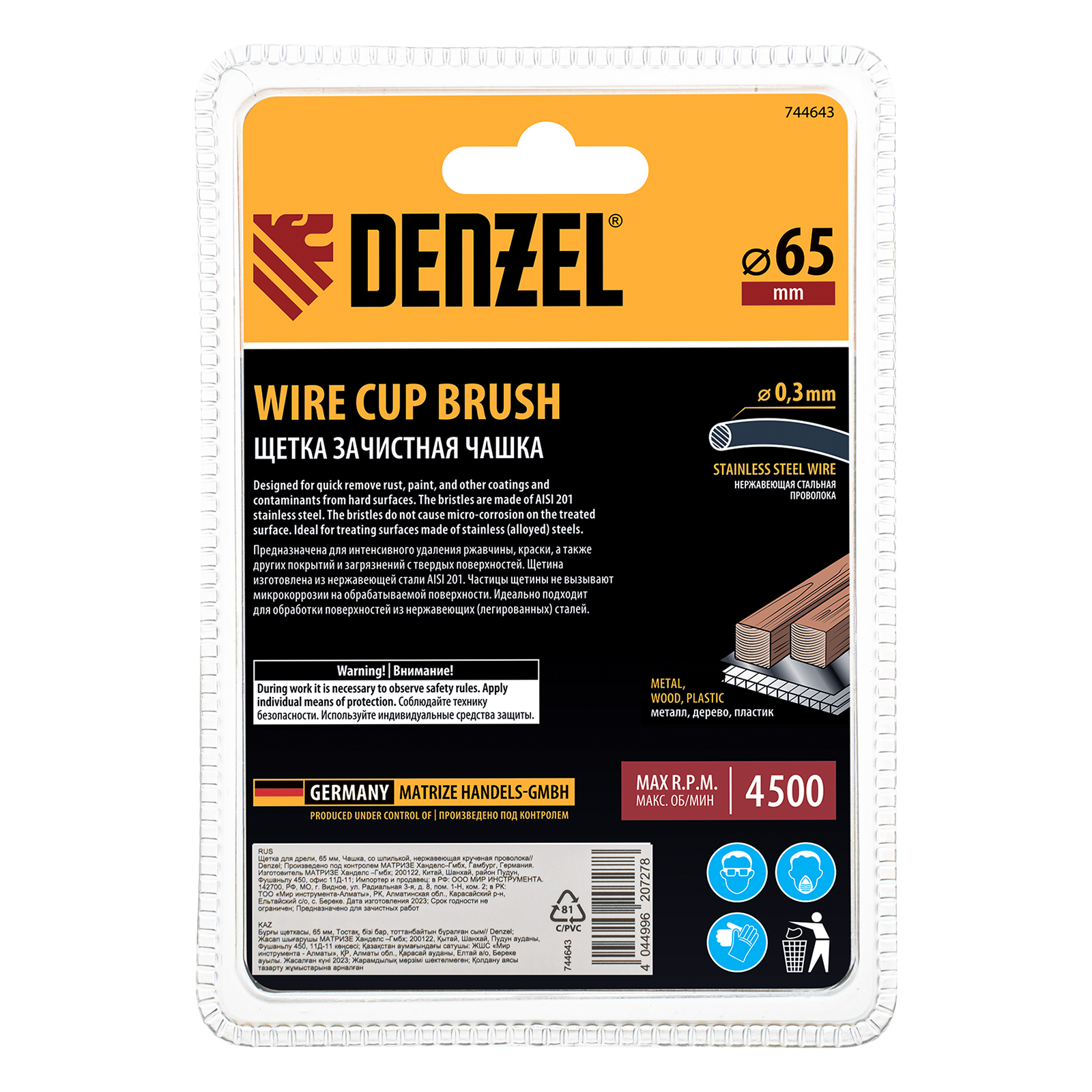 Щетка для дрели, 65 мм, Чашка, со шпилькой, нержавеющая крученая проволока Denzel