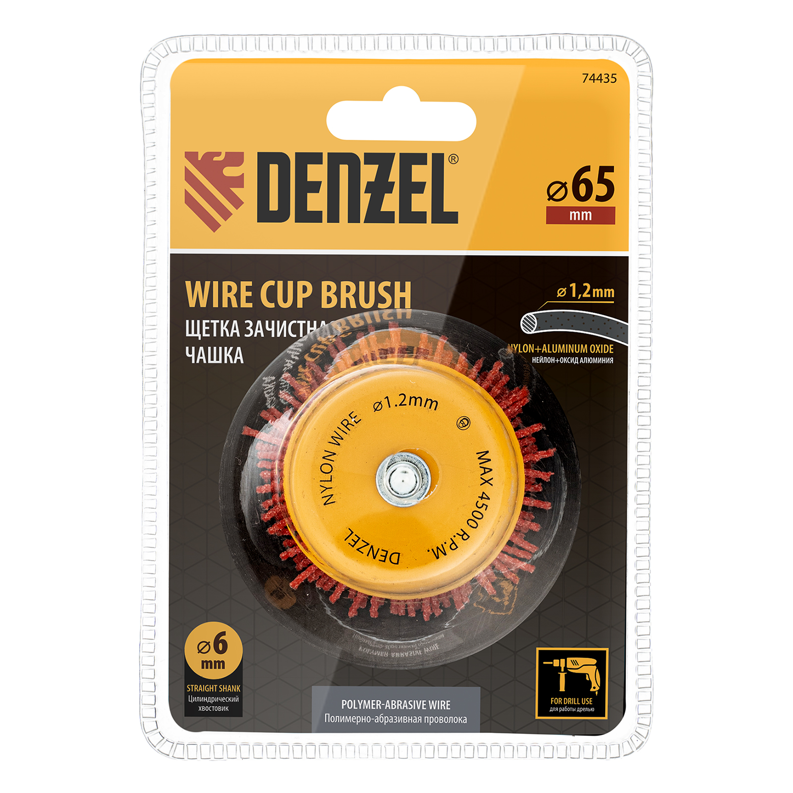 Щетка для дрели, 65 мм, Чашка, со шпилькой, нейлоновая щетина Denzel