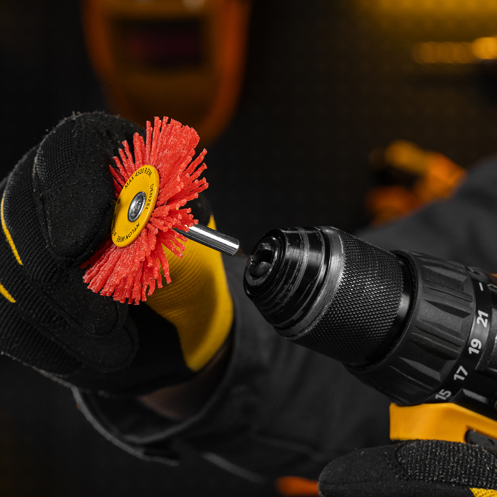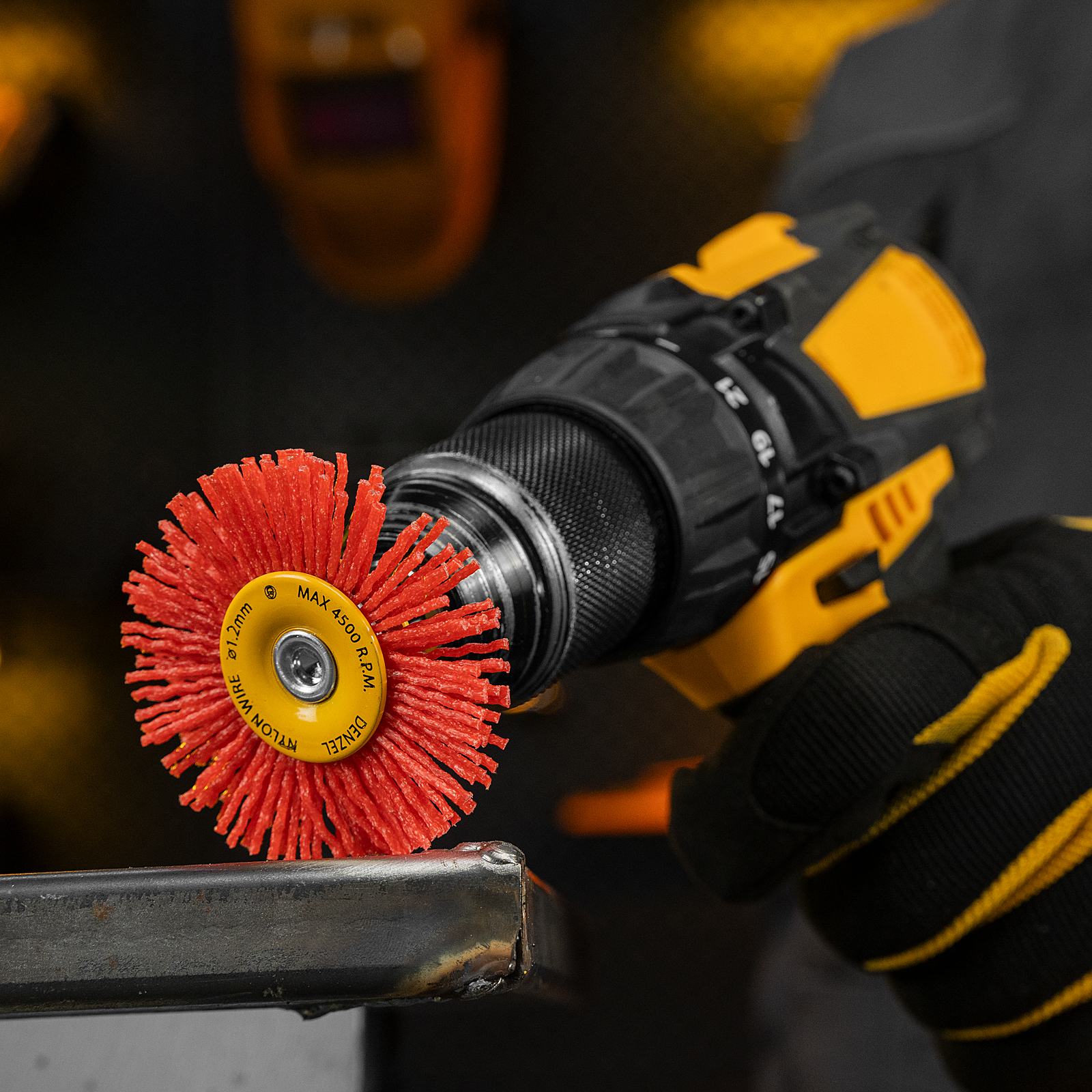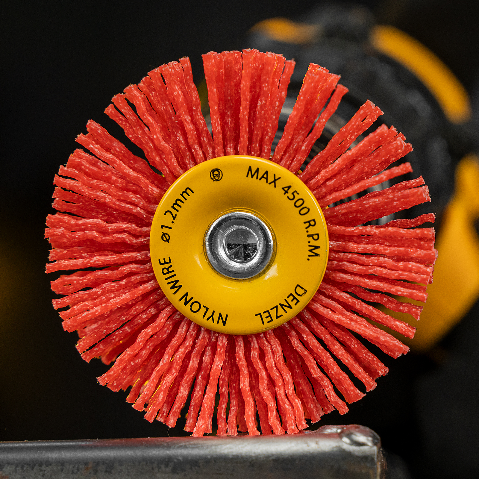 Щетка для дрели, 65 мм, Плоская, со шпилькой, нейлоновая щетина Denzel