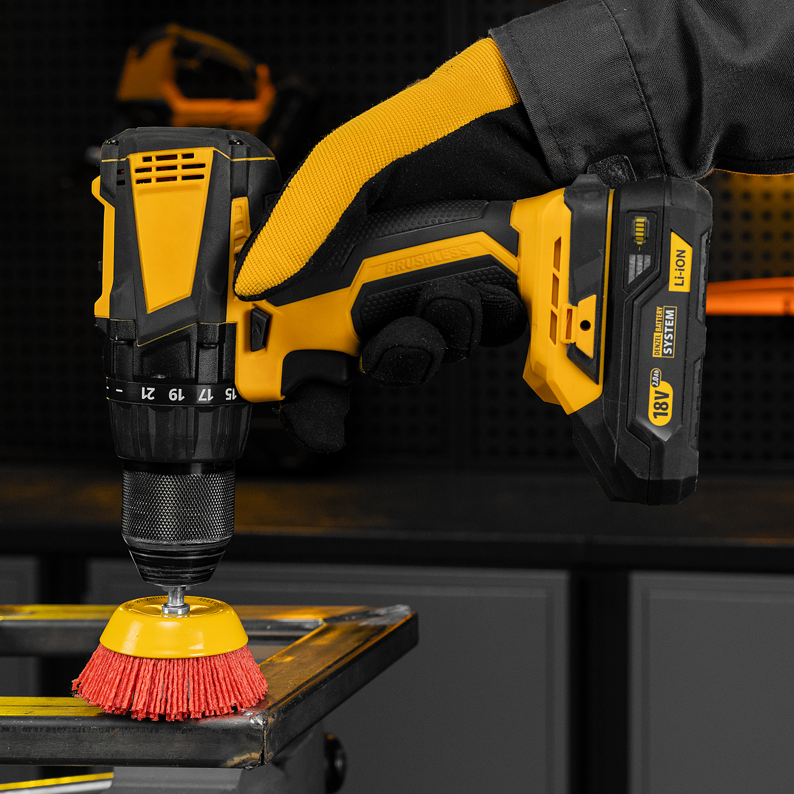 Щетка для дрели, 75 мм, Чашка, со шпилькой, нейлоновая щетина Denzel