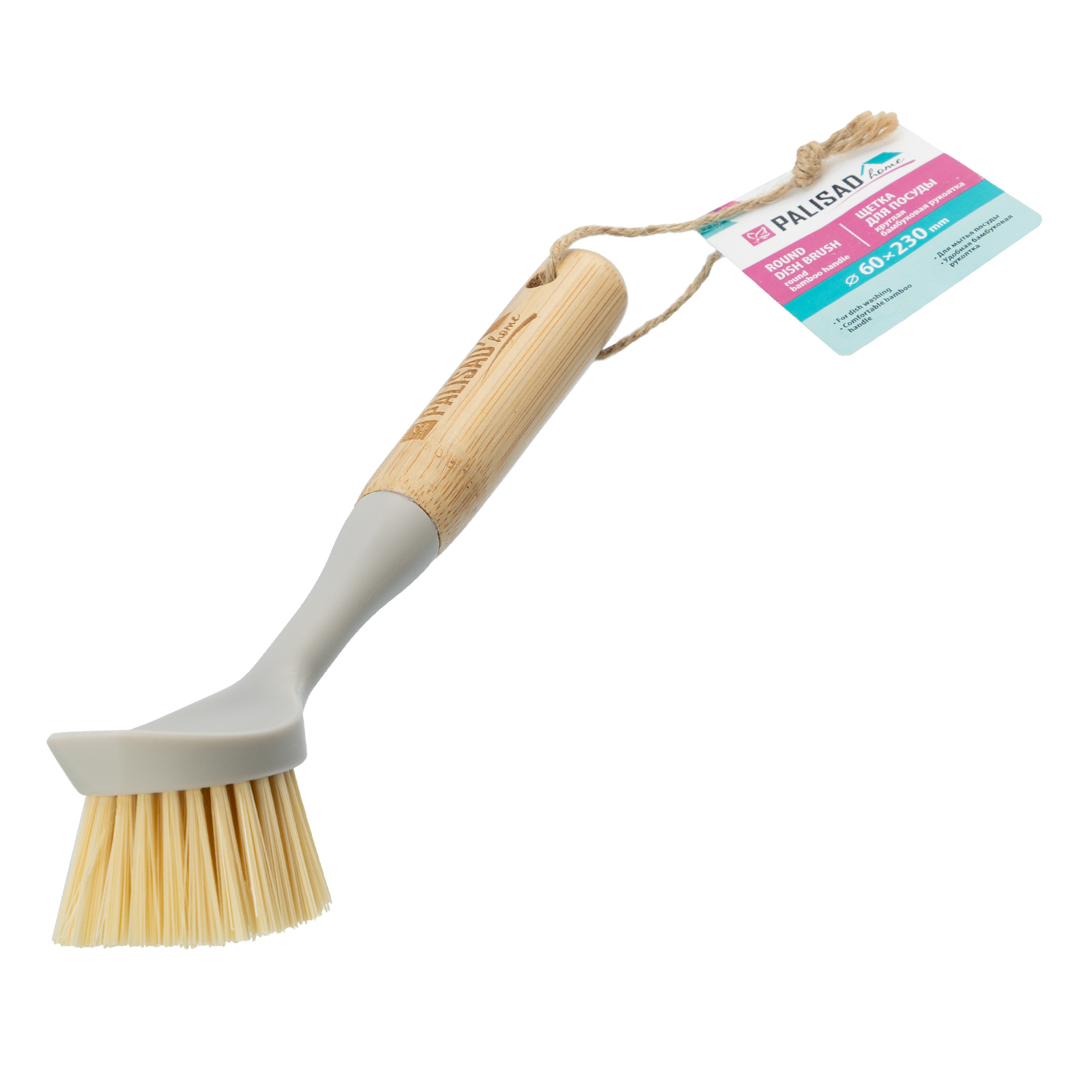 Щетка для посуды круглая d 60х230 мм, бамбуковая рукоятка, Home Palisad