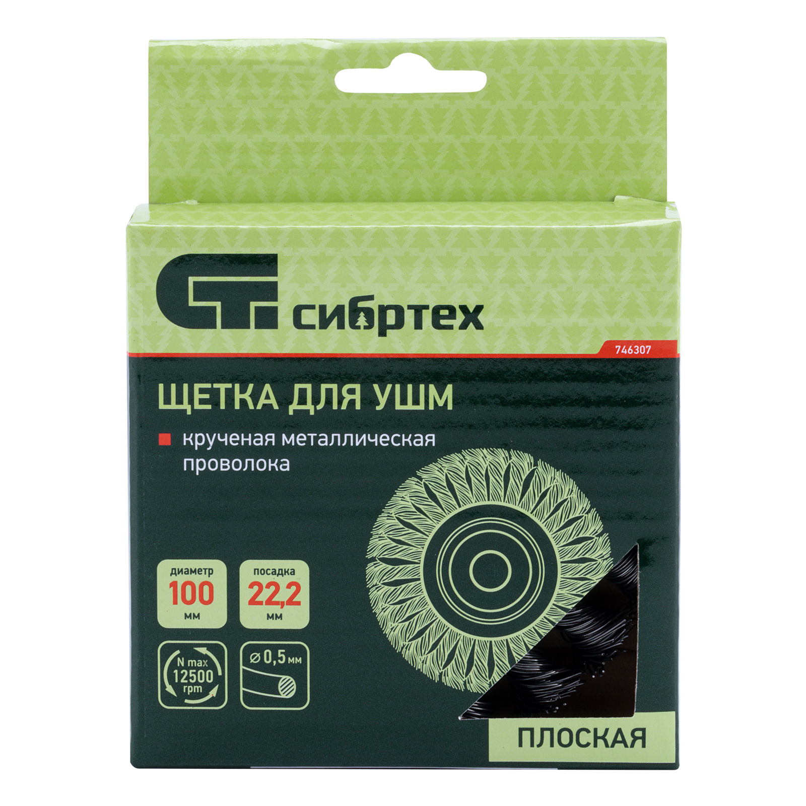 Щетка для УШМ, 100 мм, посадка 22.2 мм, плоская, крученая проволока 0.5 мм Сибртех |