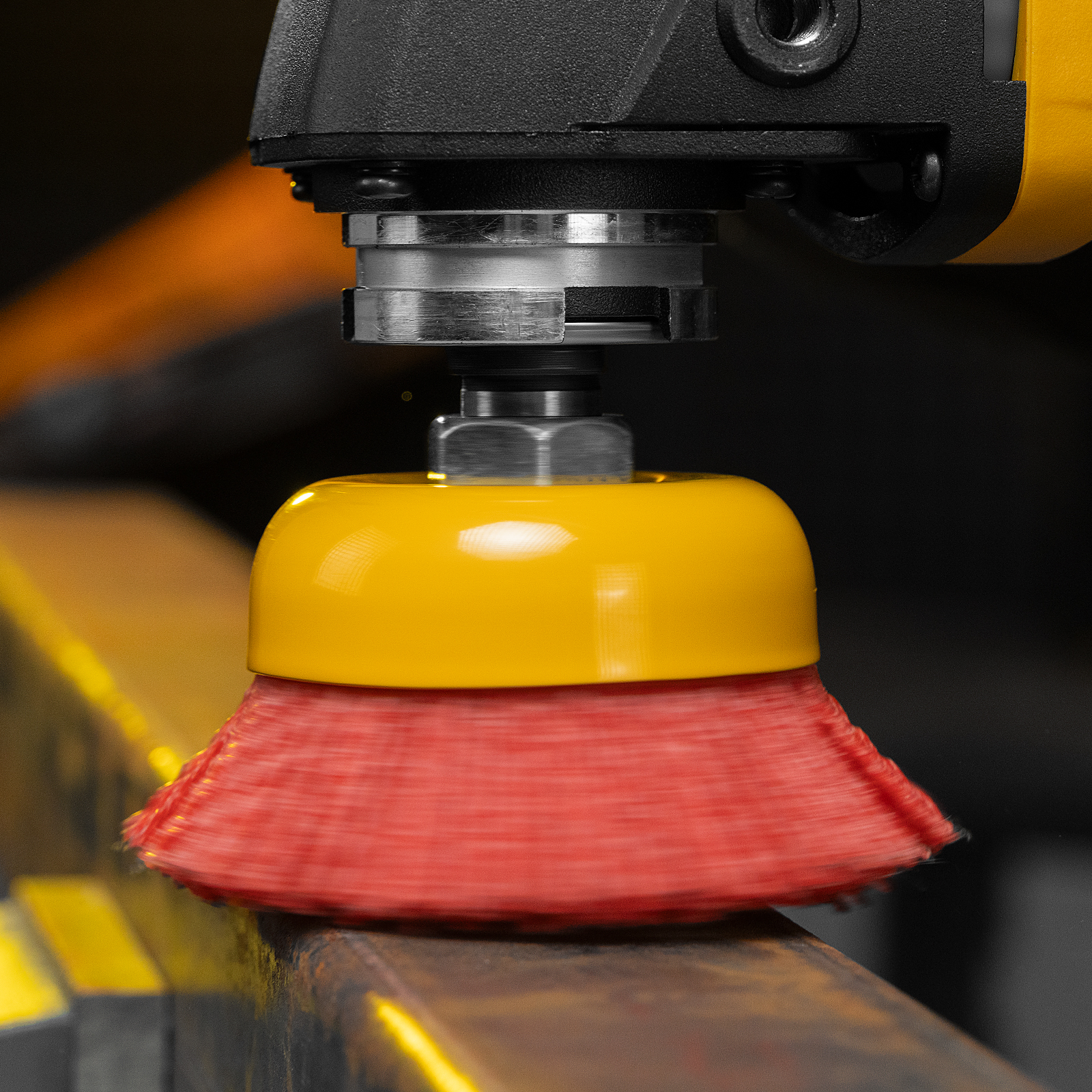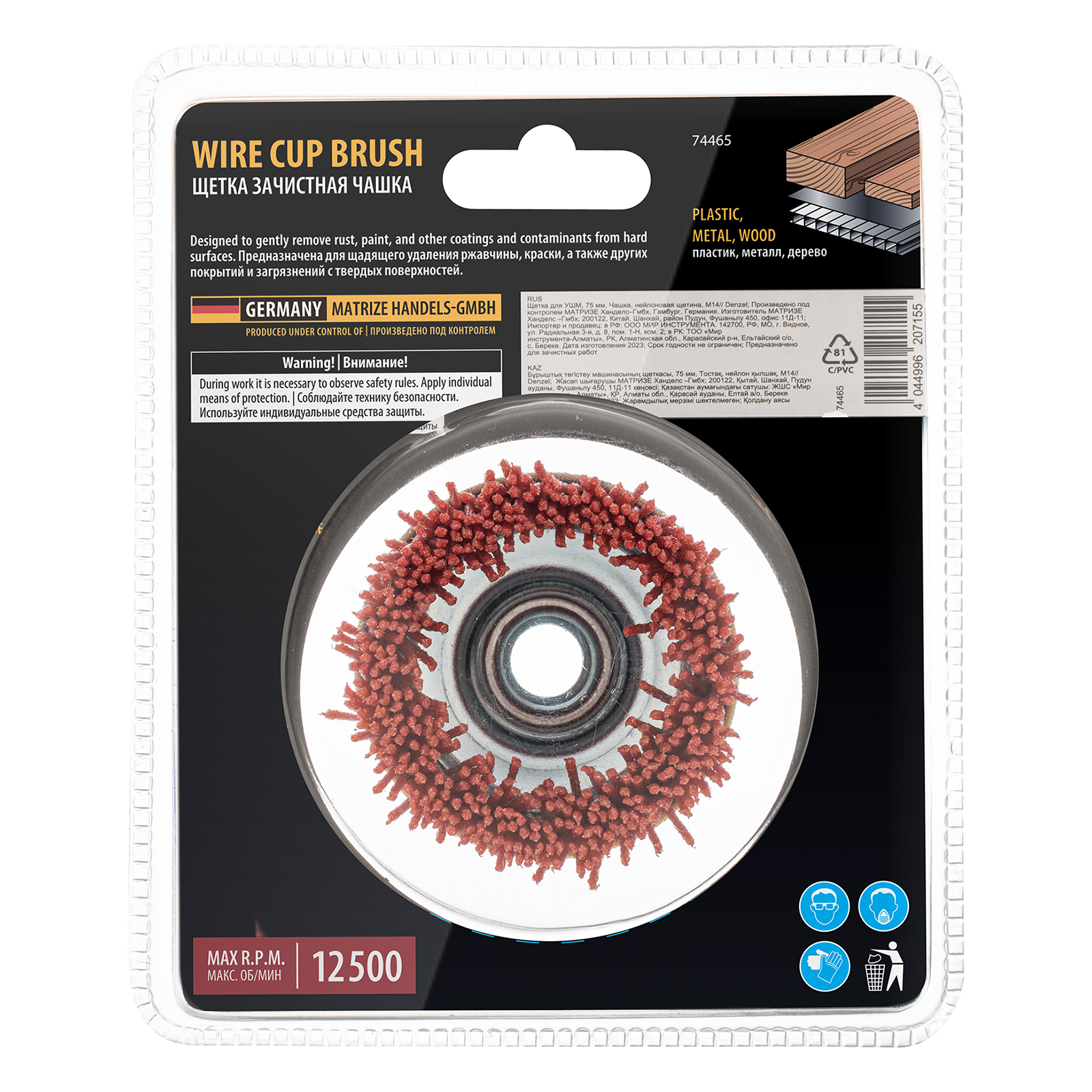 Щетка Denzel 74465 в форме чашки диаметром 65 мм, с нейлоновой щетиной, устанавливается на вал УШМ при помощи гайки М14. Предназначена для выполнения шлифовальных работ. Щетина изготовлена из высококачественного нейлона с нанесенным абразивом из оксида алюминия. удаления загрязнений, краски, пятен ржавчины с твердых поверхностей. Позволяет придать шероховатость поверхности, подходит для браширования древесины. Насадка удобна для обработки плоских деталей большой площади.