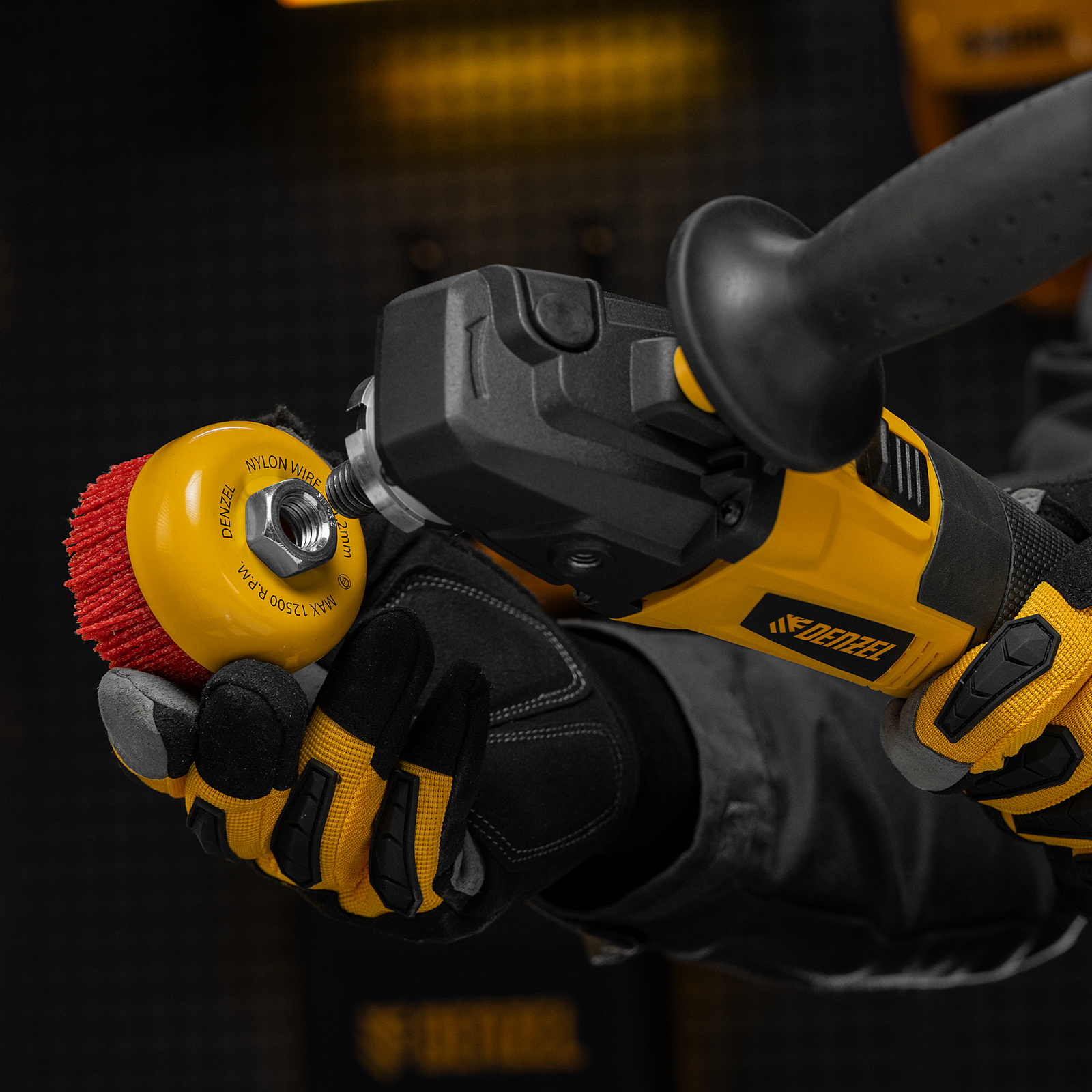Щетка для УШМ, 75 мм, Чашка, нейлоновая щетина, М14 Denzel
