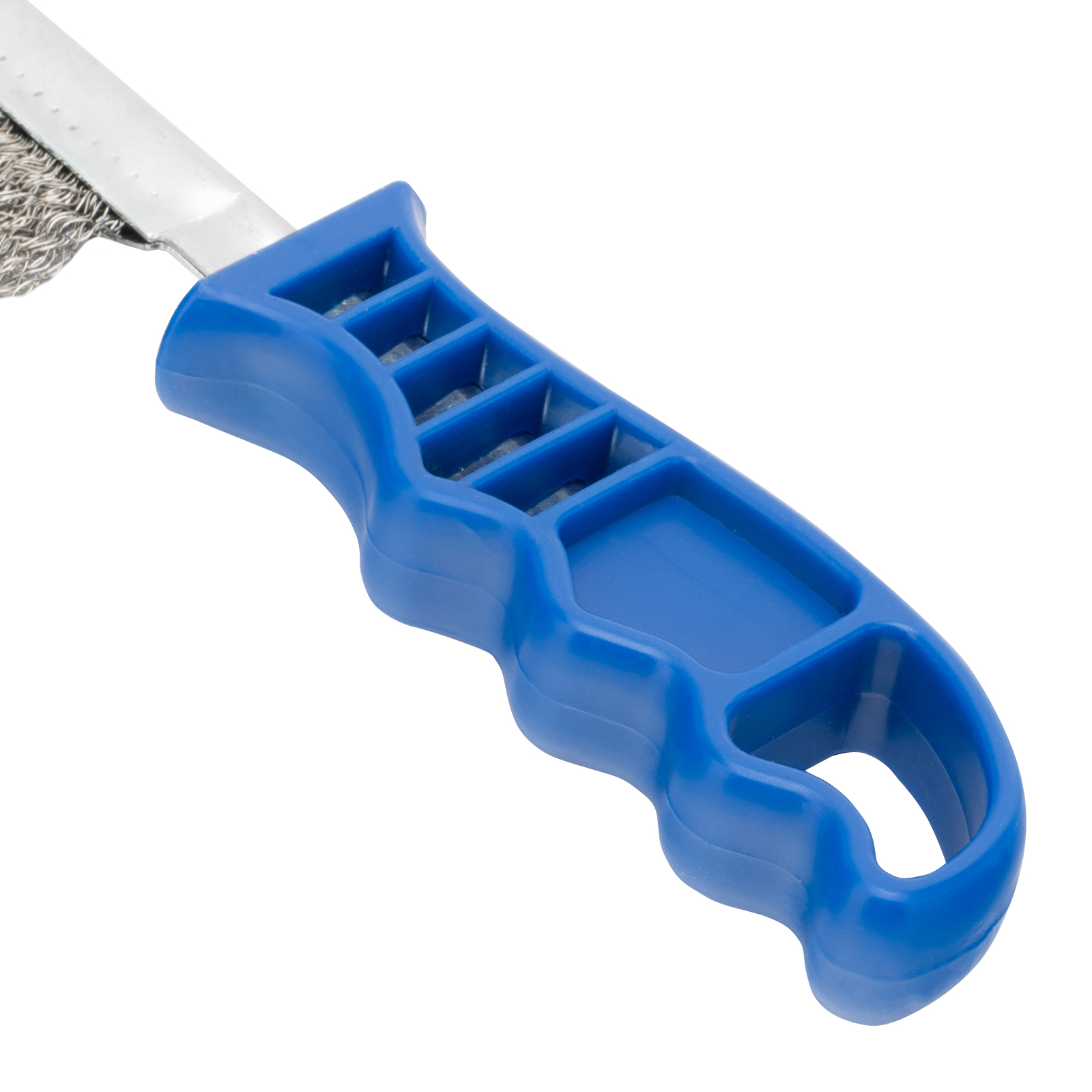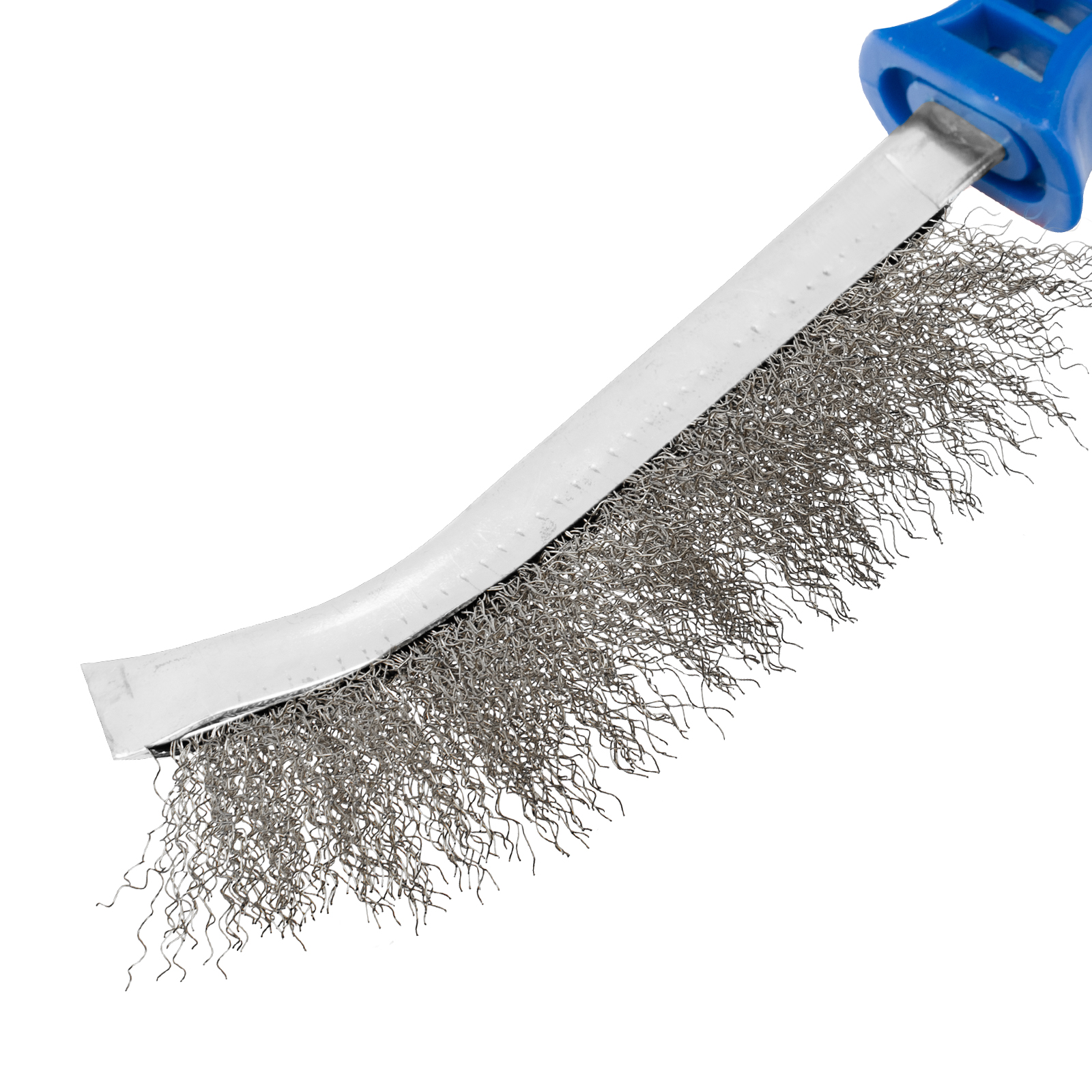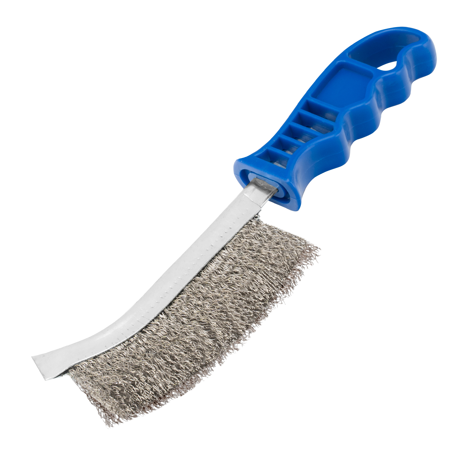 Металлическая зачистная щетка Барс 74828 с пластмассовой ручкой и щетиной из нержавеющей проволоки, используется для очищения металлических, деревянных и других поверхностей от ржавчины, загрязнений, остатков лакокрасочных покрытий. Щетина из нержавейки с высокой абразивной способностью обеспечивает эффективность щетки. Благодаря изогнутому корпусу щетка удобна для обработки поверхностей со сложным рельефом. Инструмент пригодится во время строительства, кузовного ремонта, а также на производстве и в быту.