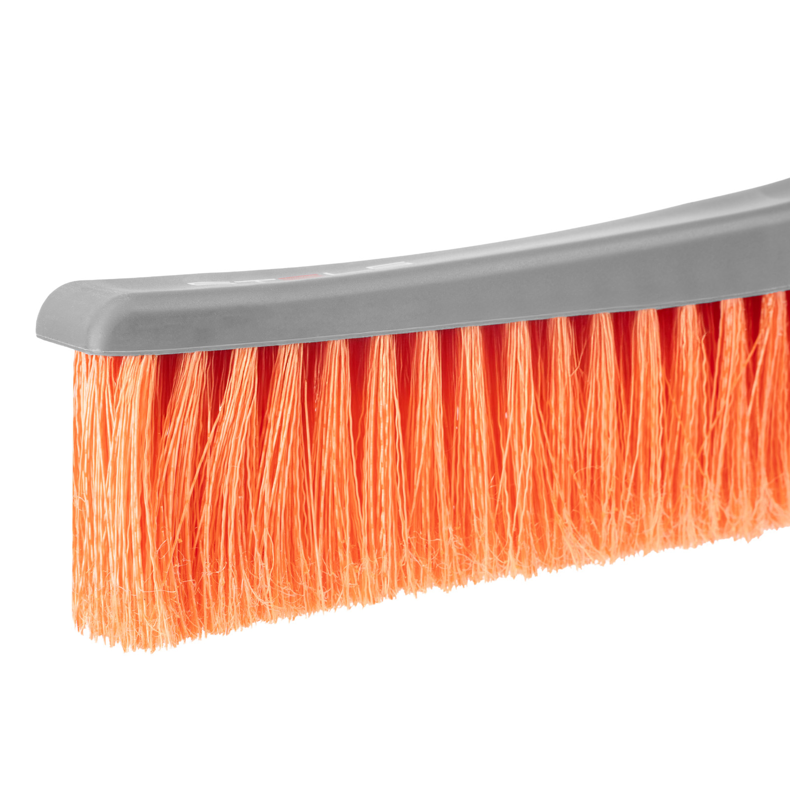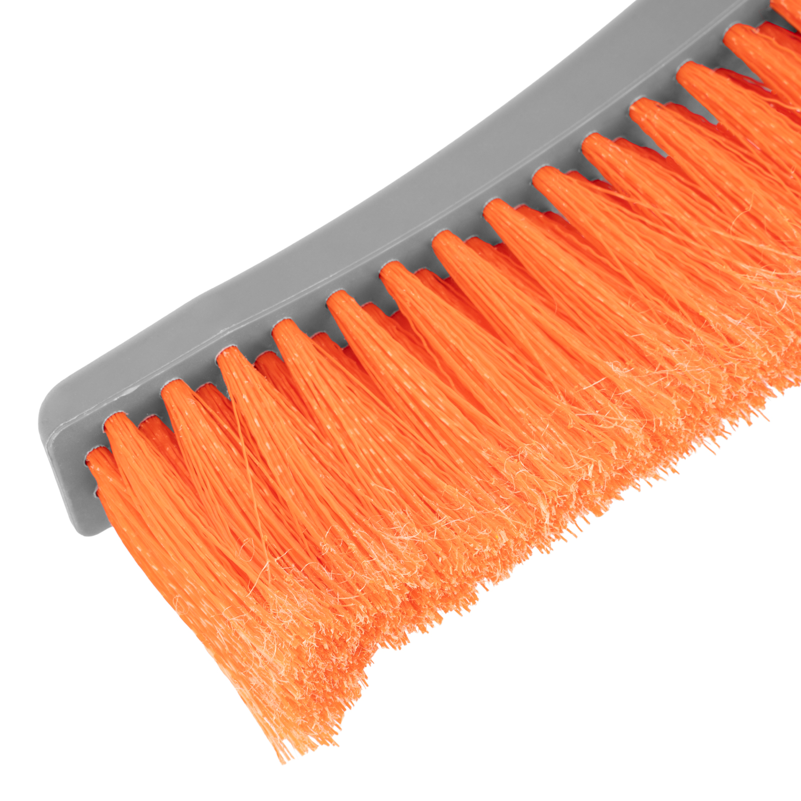 - Эргономичность — изогнутая рукоятка облегчает очистку труднодоступных мест, благодаря мягкой накладке щетку комфортно держать без перчаток.