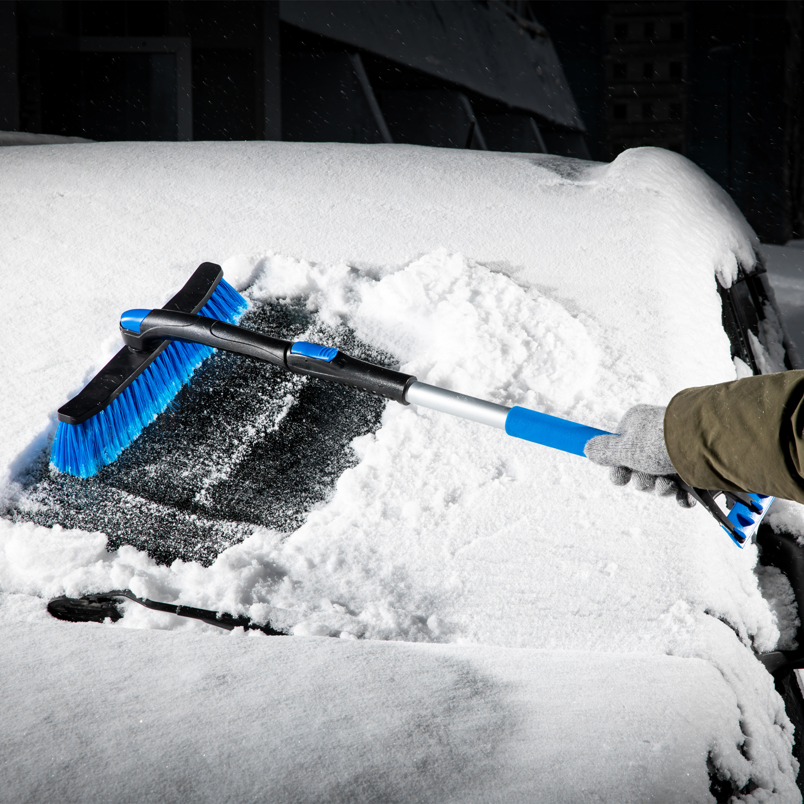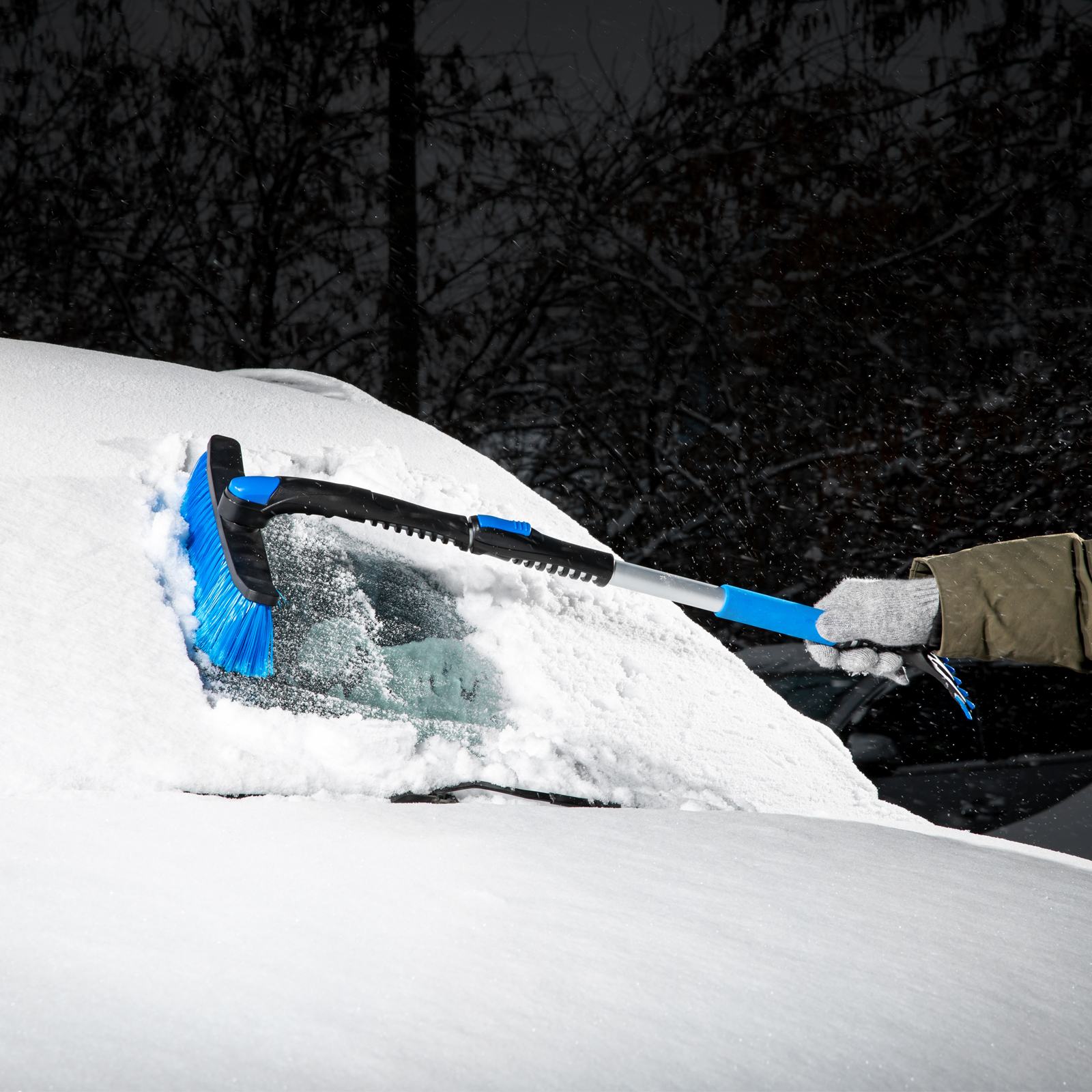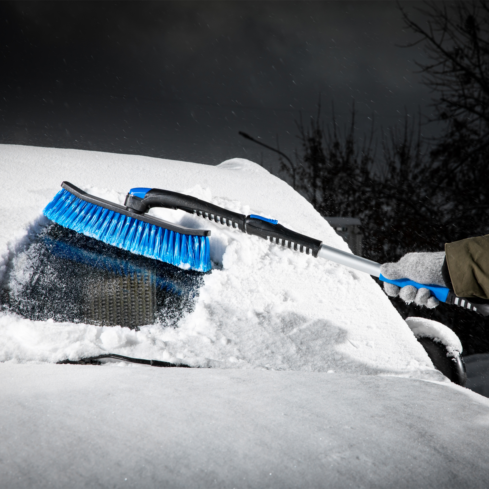 Телескопическая щетка-сметка для снега Барс 55324 со скребком используется для удаления снега и наледи с кузова и стекол автомашины. Лакокрасочное покрытие не царапается, поскольку плотная щетина распушена на кончиках. Щетка-скребок будет полезна владельцам автомобилей.