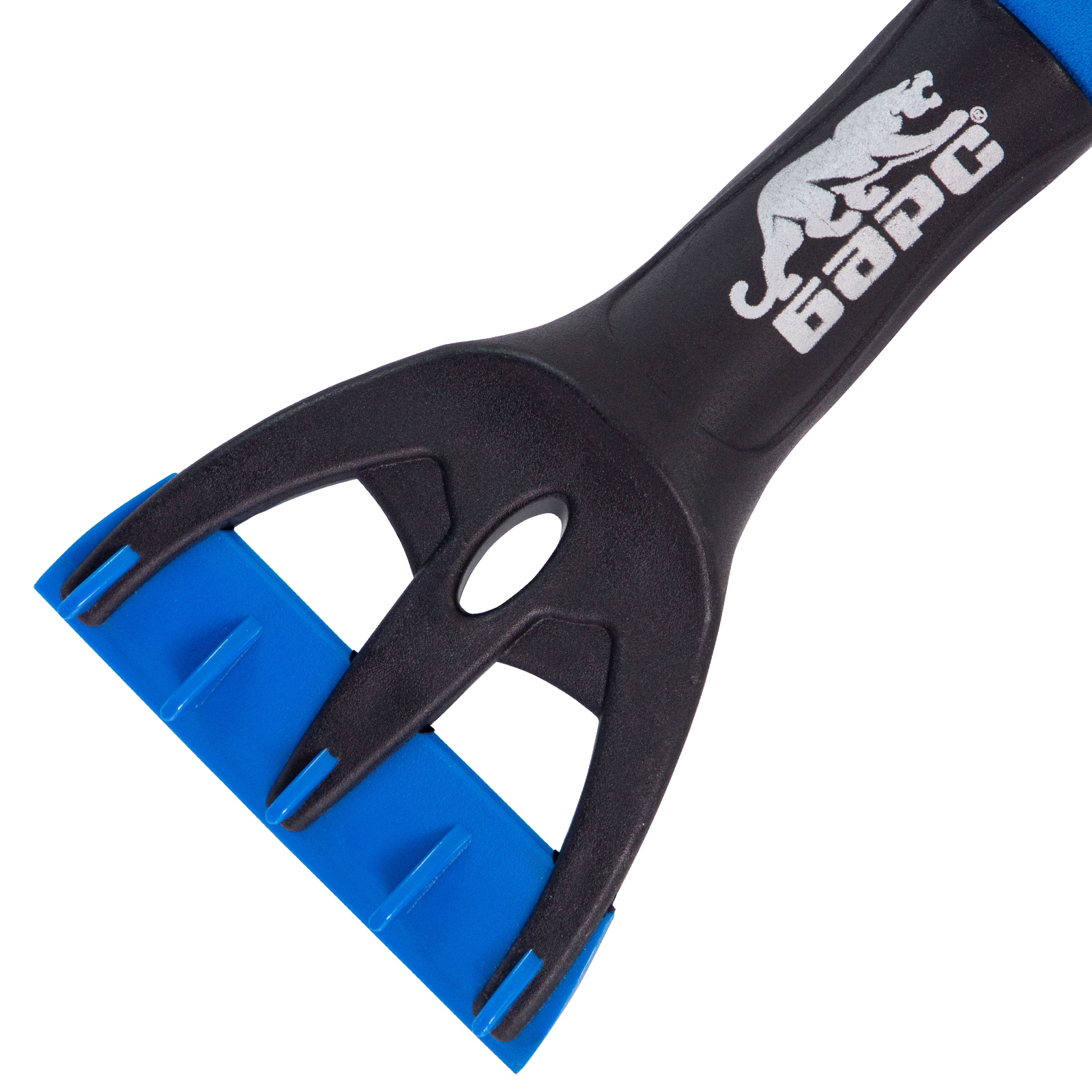 - Скребок шириной 110 мм имеет специальные зубья, поэтому успешно справляется с толстым слоем наледи.