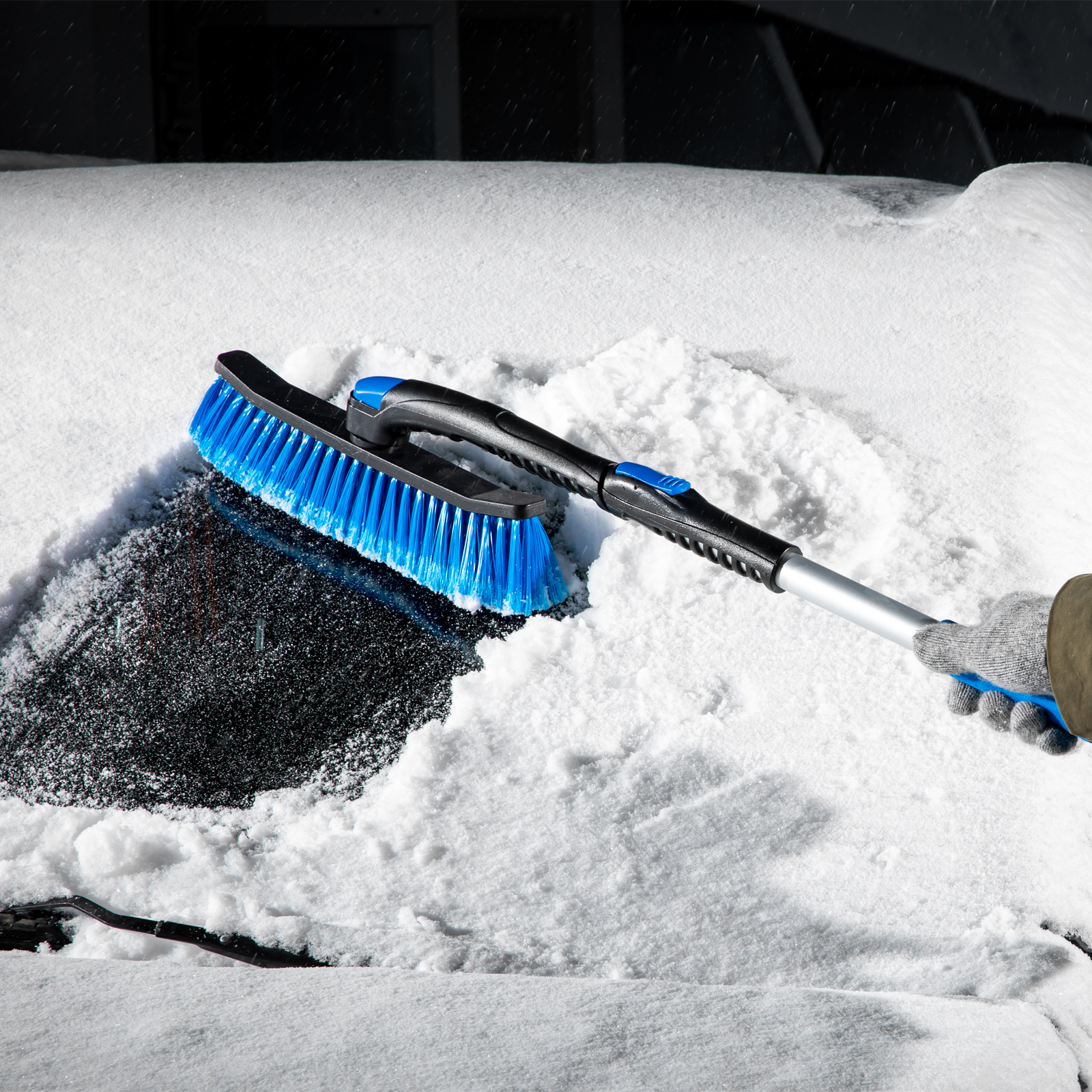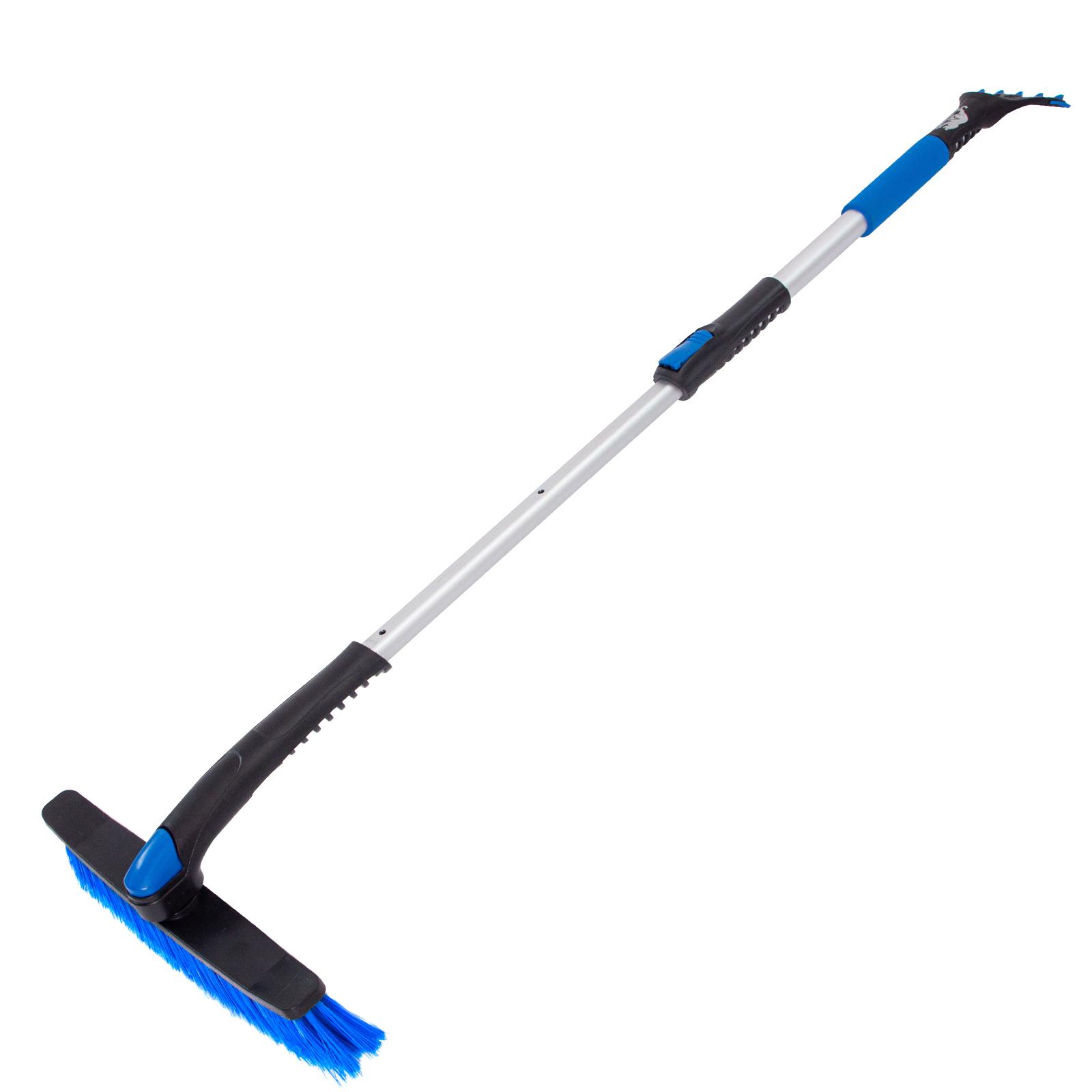 - Рукоятка раздвигается и фиксируется на выбранной длине, поэтому щеткой можно без труда очистить капот или крышу авто, стоя с одной стороны.