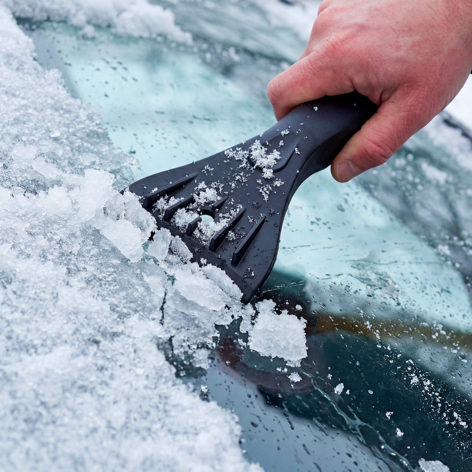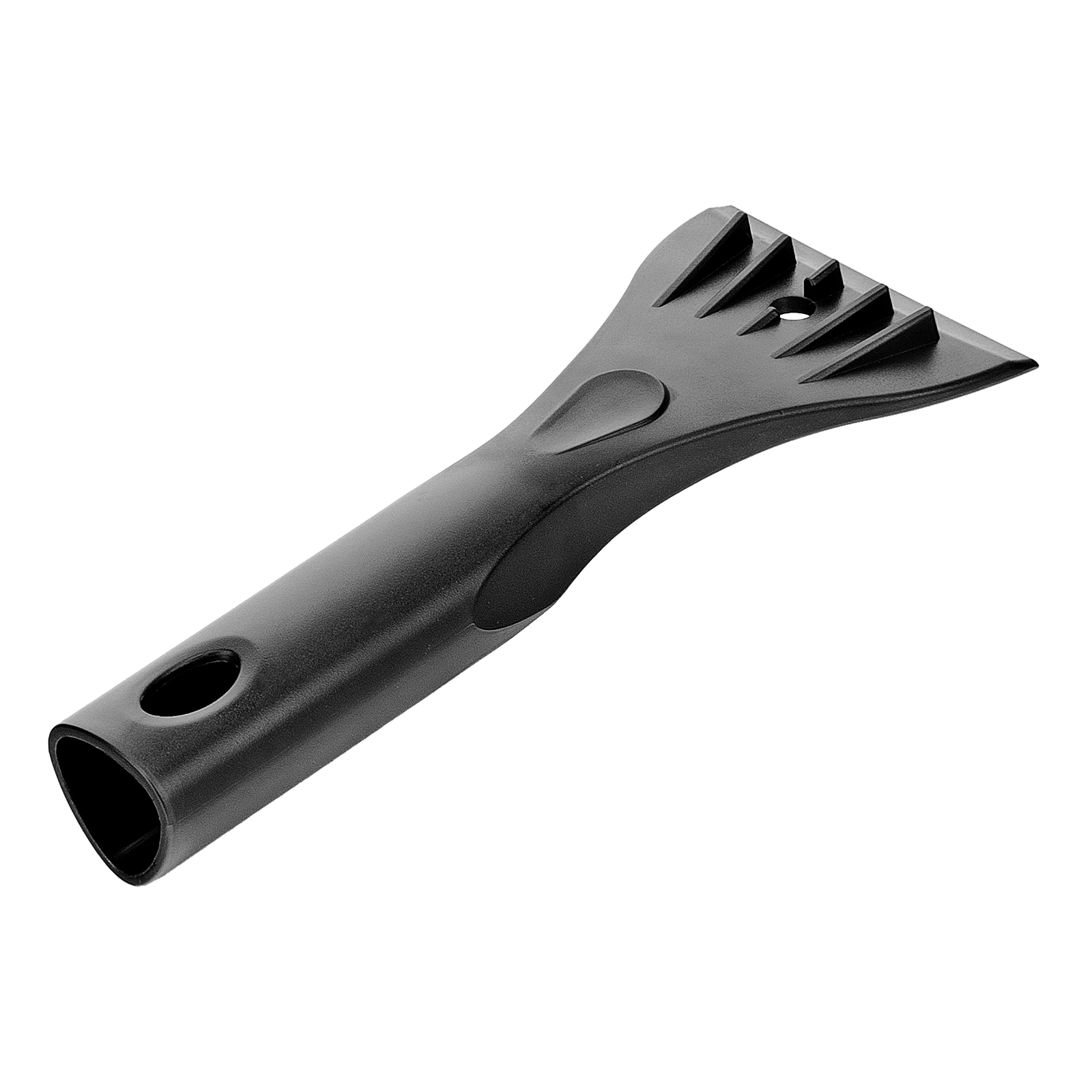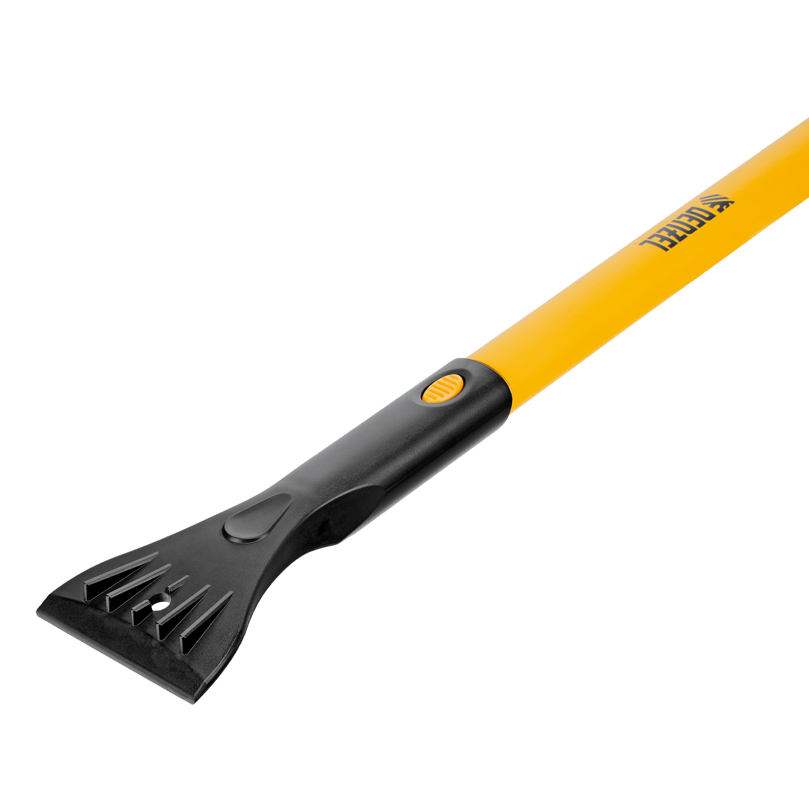 - Эффективность — благодаря специальным зубьям скребок шириной 10 см успешно справляется с толстым слоем наледи.