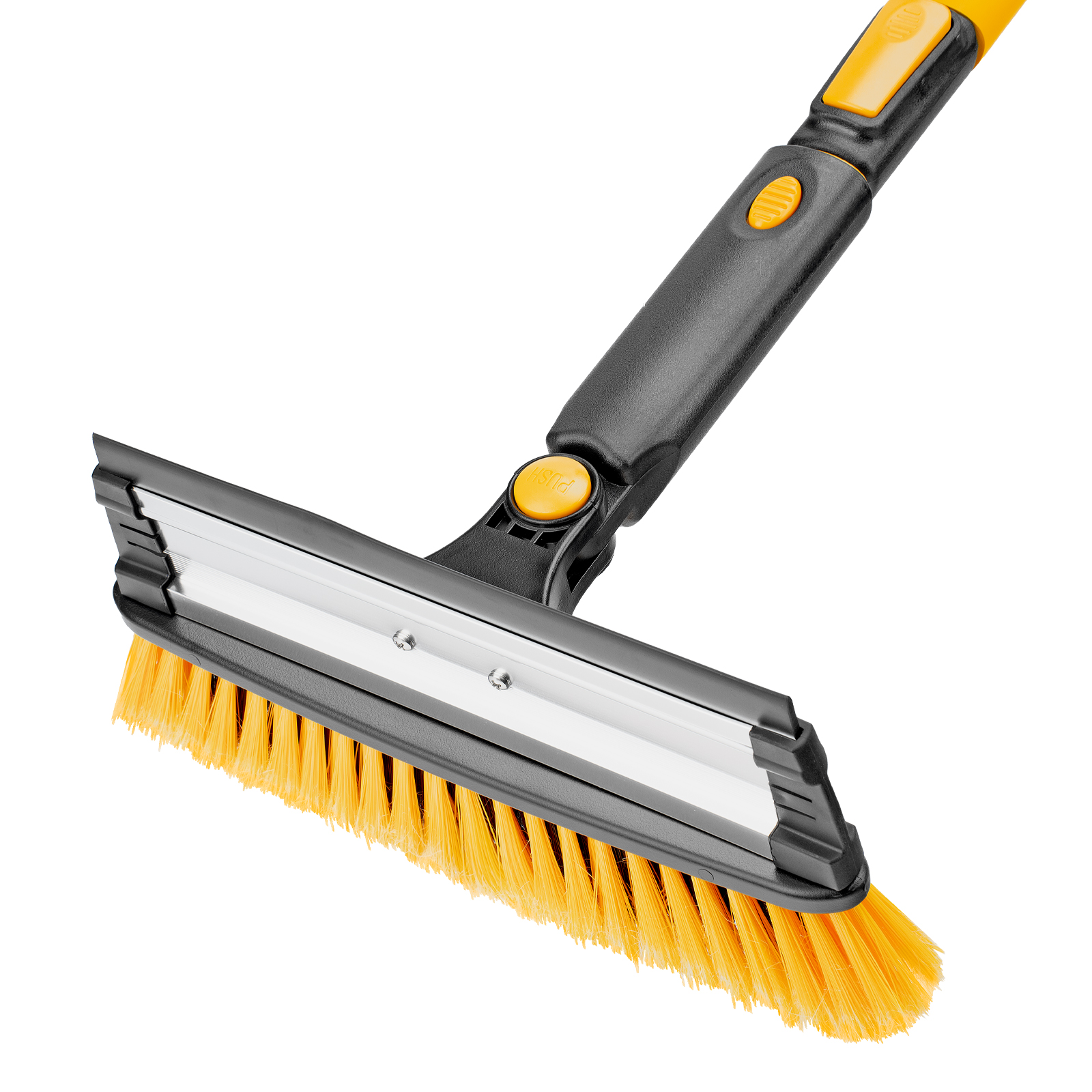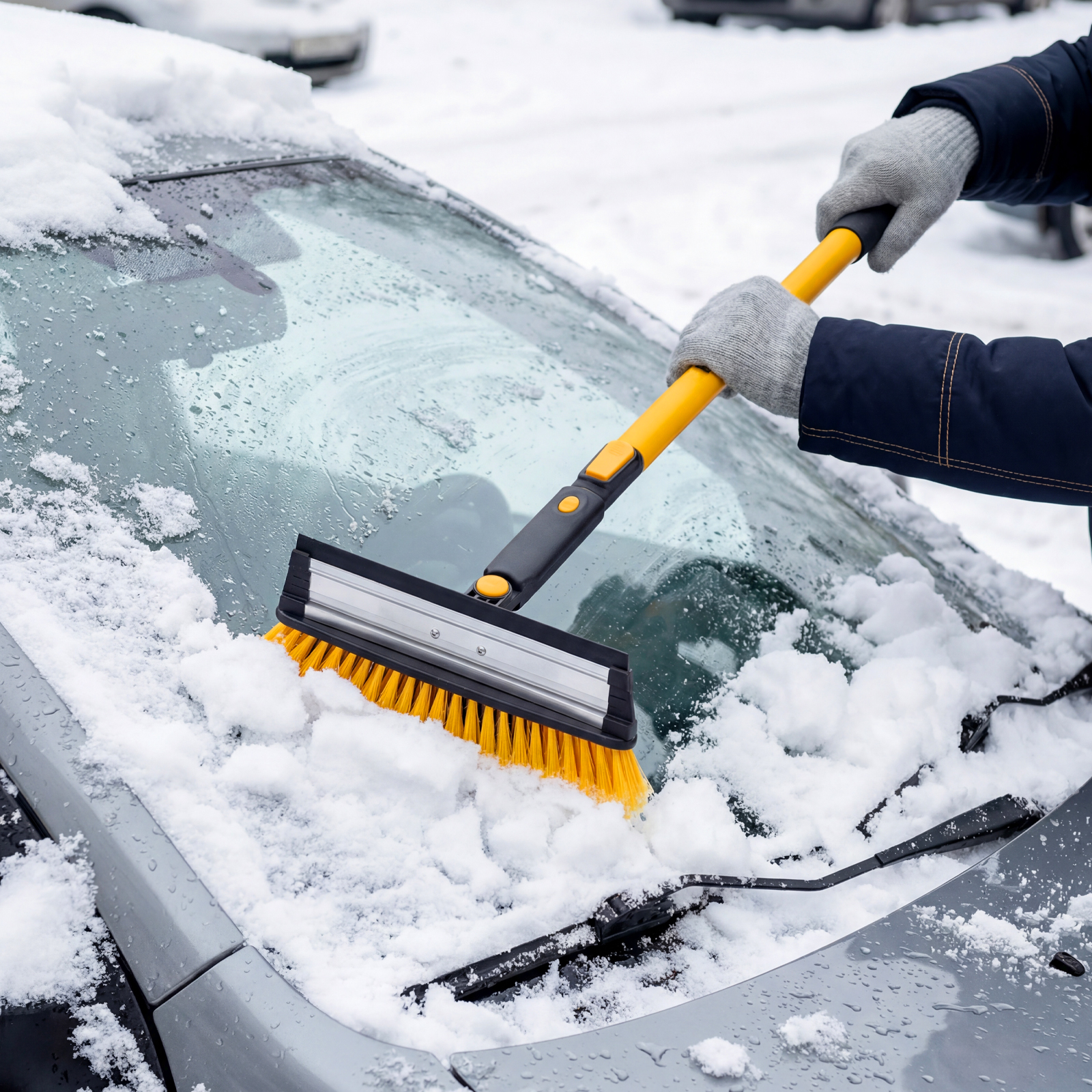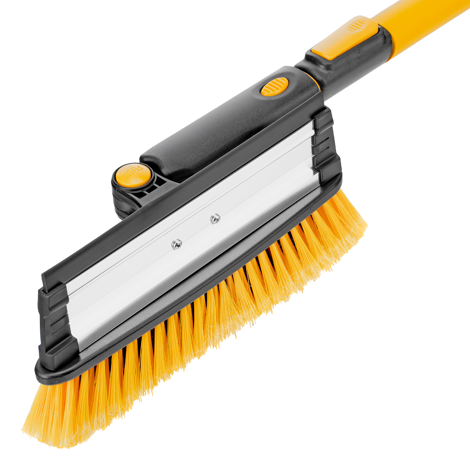 - Регулировка длины — рукоятка выдвигается и фиксируется на длине 90-120 см, что позволяет без труда очистить крышу транспортного средства.