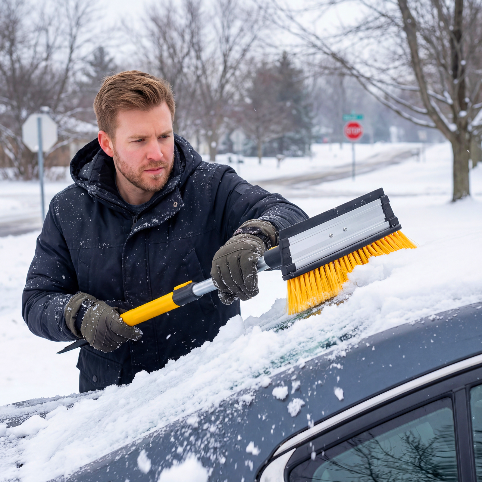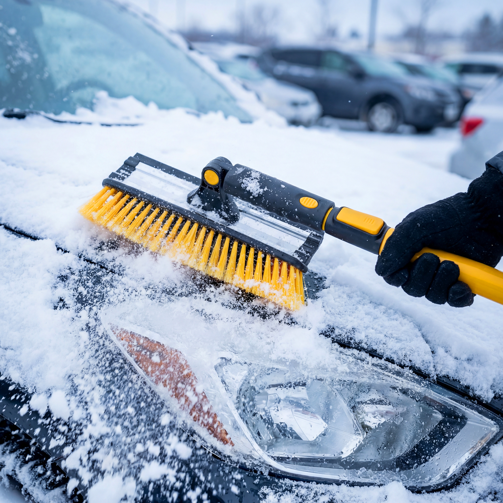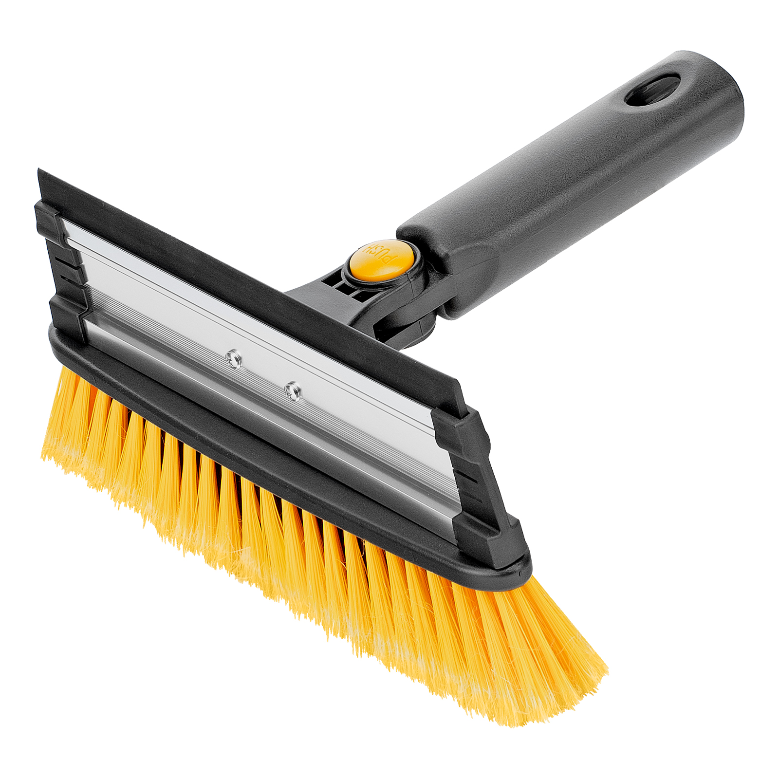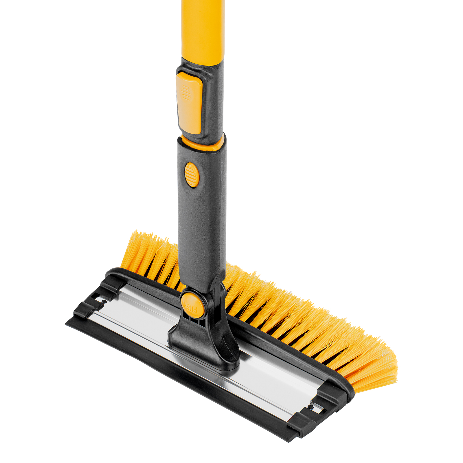 - Регулировка длины — рукоятка выдвигается и фиксируется на длине 90-120 см, что позволяет без труда очистить крышу транспортного средства.