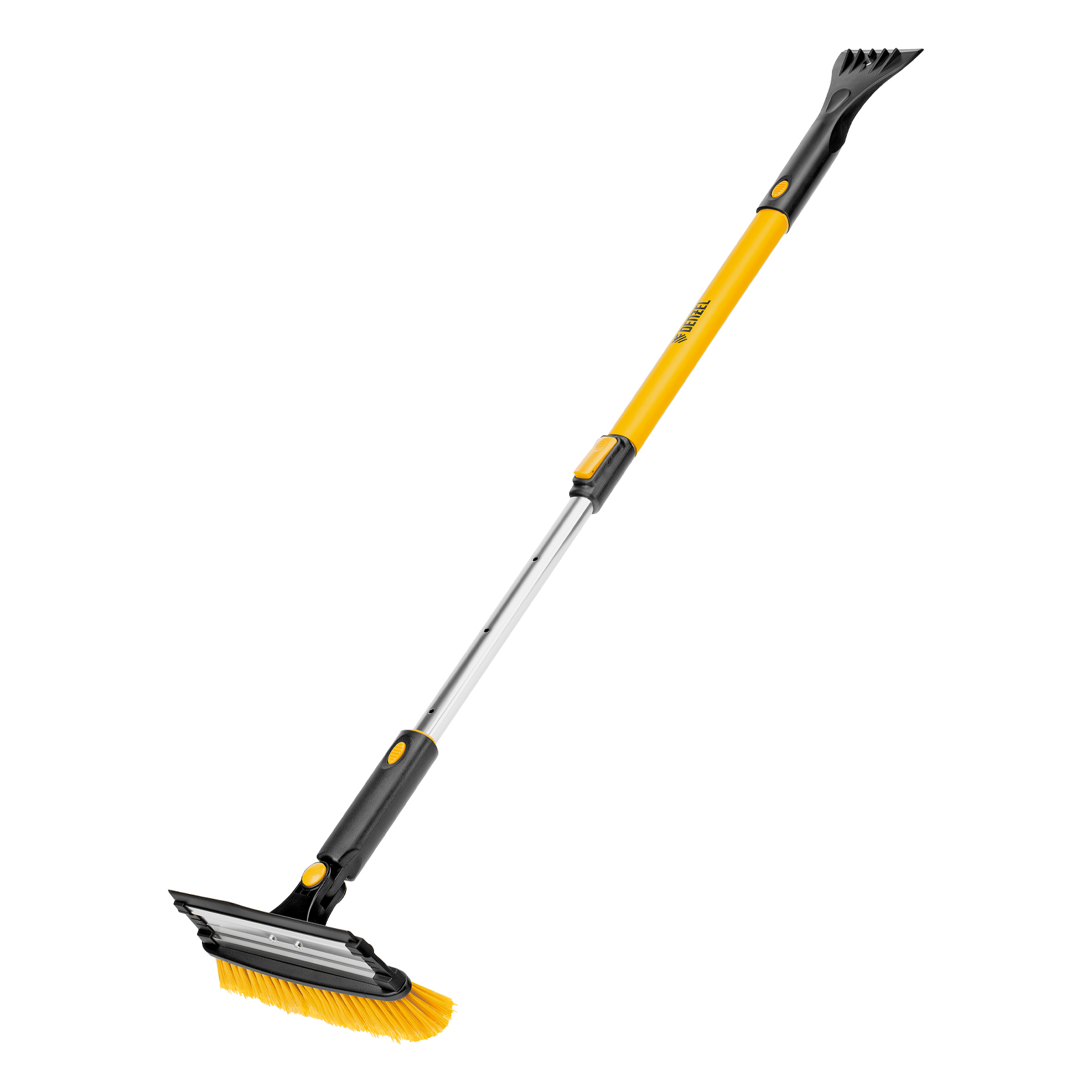 Щетка-сметка для снега со скребком, телескоп, поворотная голова, водосгон, 900-1200 мм Denzel