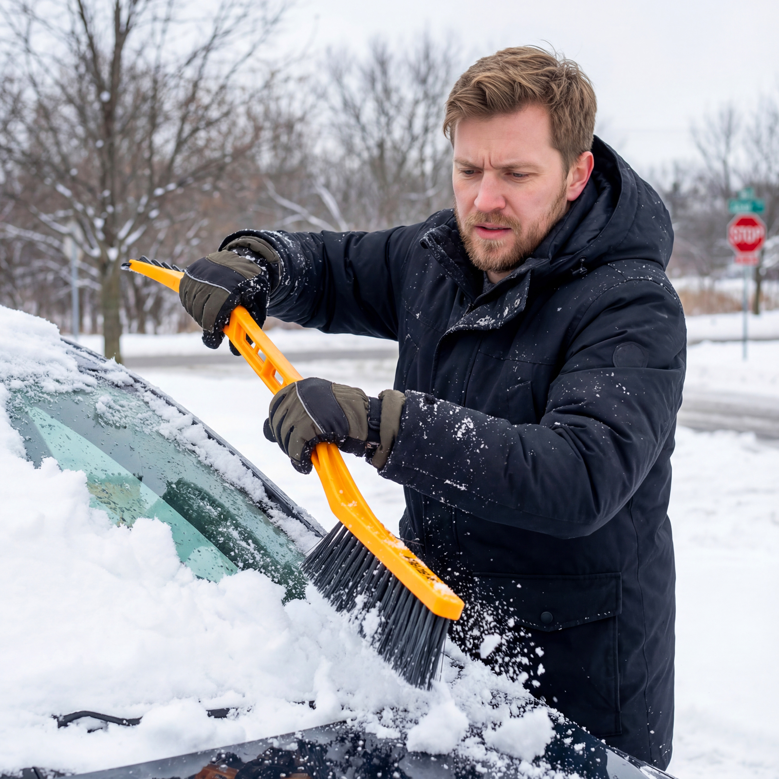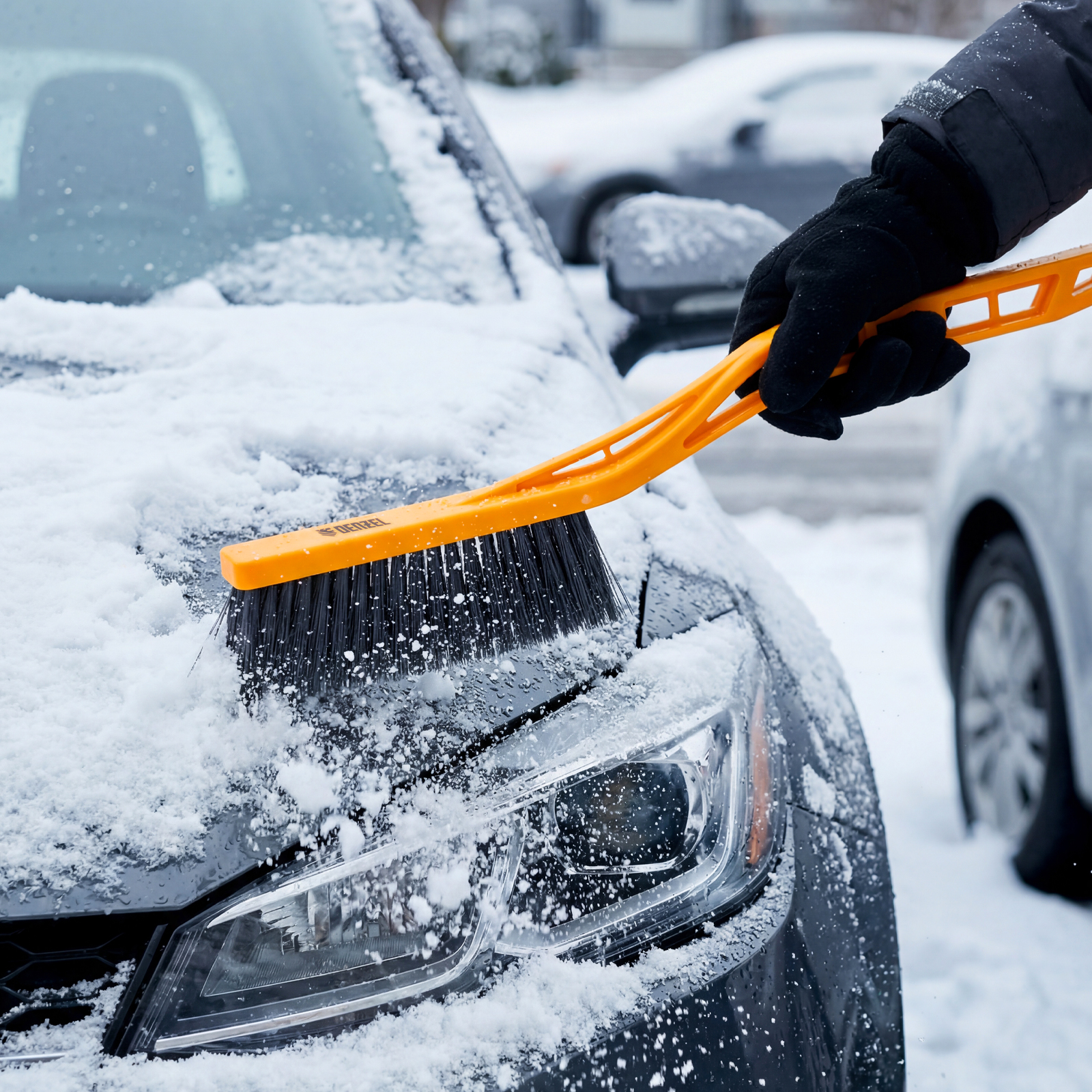 - Бережная очистка — распушенная щетина шириной 21 см не портит лакокрасочное покрытие автомобиля.