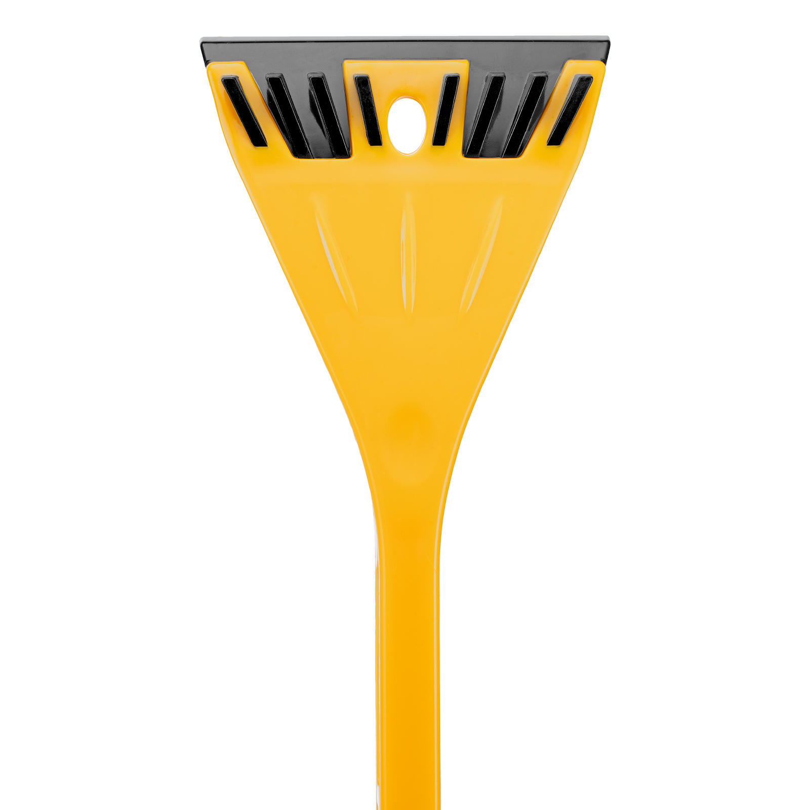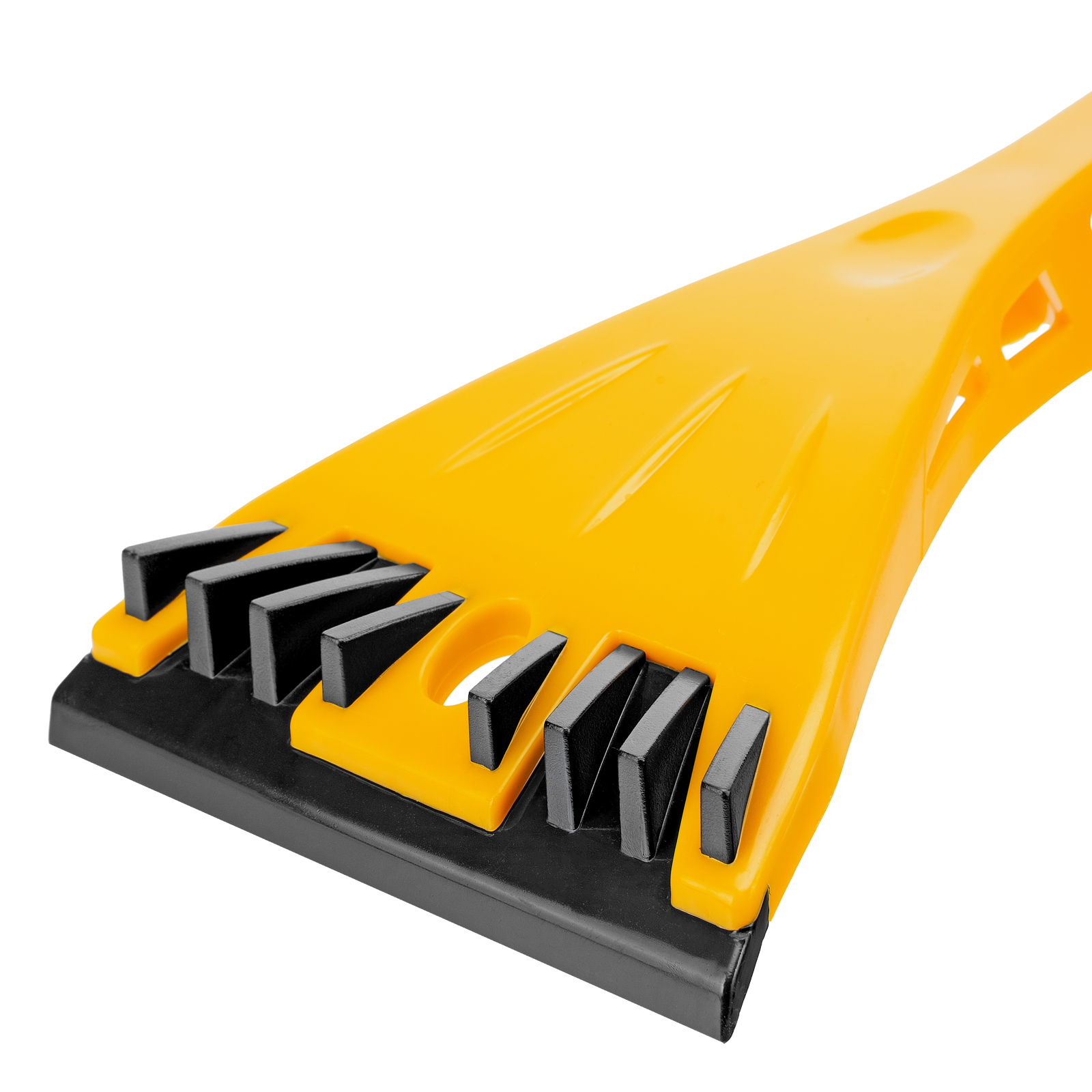 - Эффективность — скребок шириной 11 см быстро очищает поверхности стекол и зеркал от толстой наледи благодаря специальным зубьям.