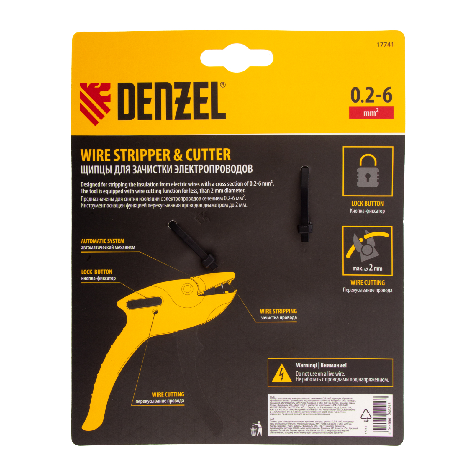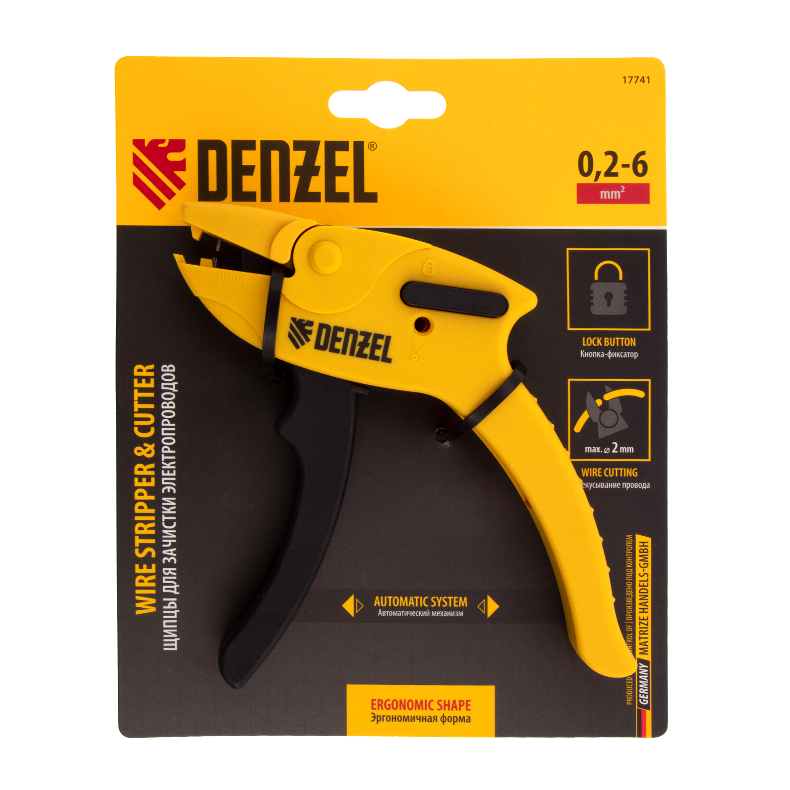 Щипцы Denzel 17741 предназначены для зачистки электропроводов сечением 0,2-6 кв. мм (10-24 AWG) и имеют дополнительную функцию обрезания проводов диаметром до 2 мм. Форма инструмента облегчает работу в труднодоступных местах, поэтому он оптимален для установки подрозетников. Щипцы пригодятся начинающим мастерам и профессионалам для проведения электромонтажных работ.