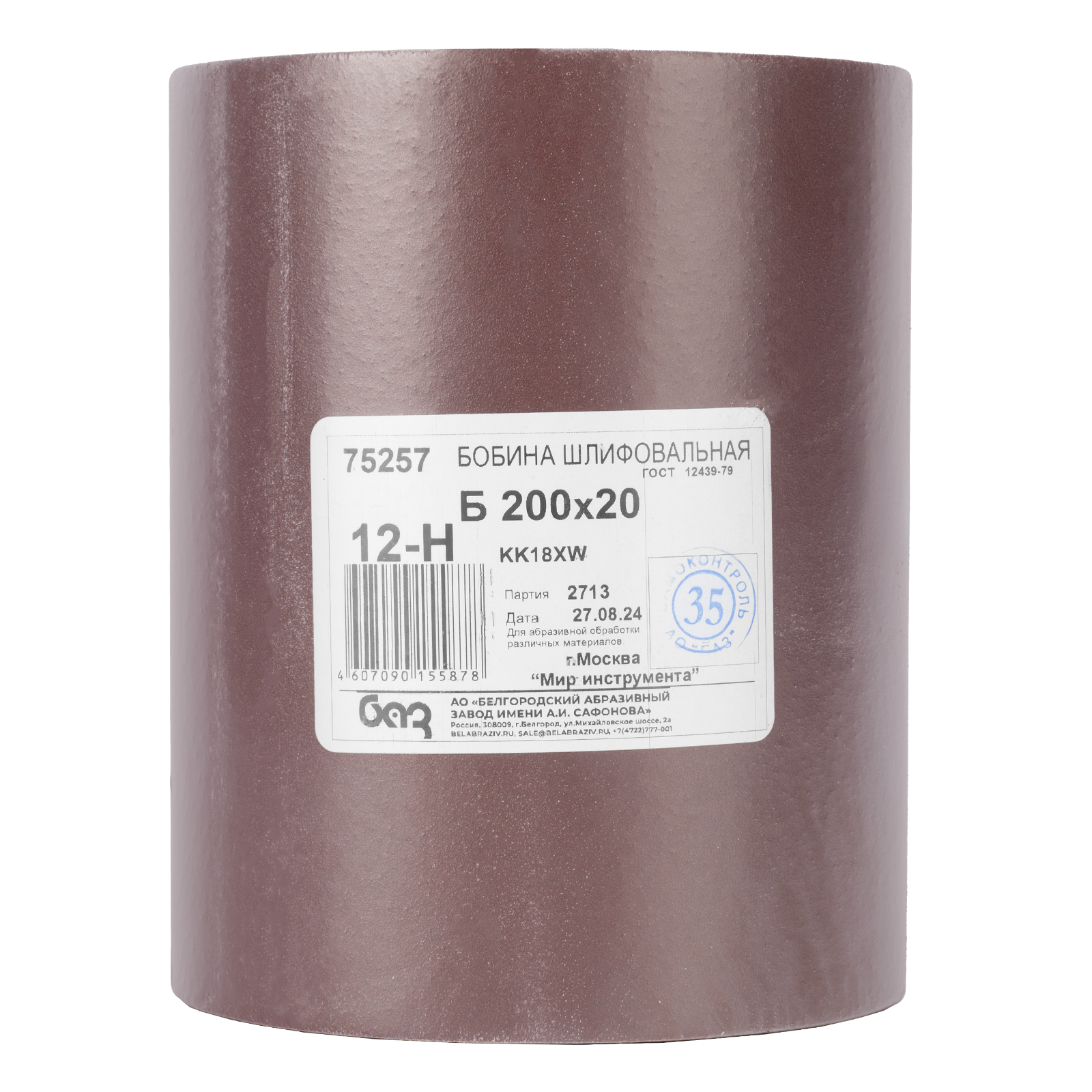 Водостойкая шкурка на тканевой основе БАЗ 75257 серии KK18XW, с зернистостью 12H (P 100) и размером 200 мм x 20 м, поставляется на бобине и подходит для промежуточной обработки материалов из металла, древесины, пластика и т.д. Абразив Р 100 с частицами размером 125-160 мкм позволяет выравнивать поверхности перед грунтовкой, выполнять промежуточную шлифовку, зачищать сварной шов, удалять старые лакокрасочные покрытия и налет ржавчины.