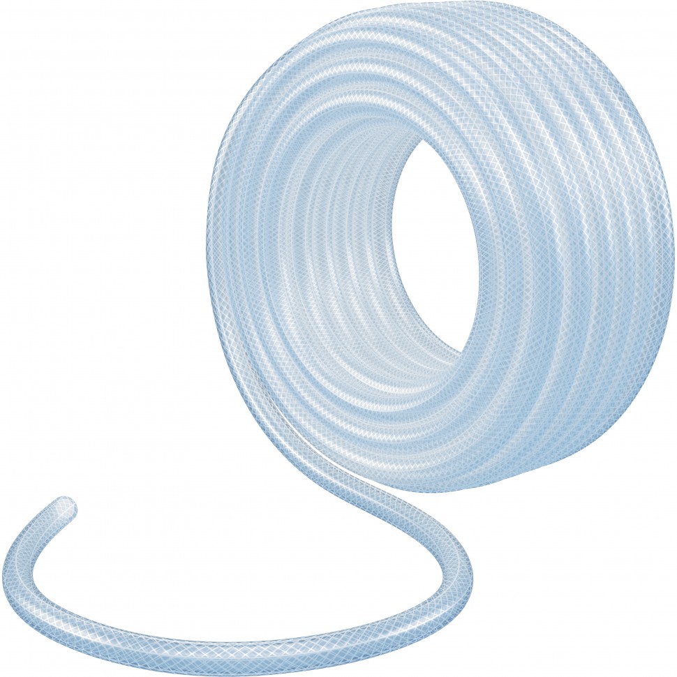 - Прочность и деформационная стойкость — шланг из ПВХ, армированный суперпрочной полиэстерной нитью плотностью 93 ТЭКС, устойчив к скручиванию и повышенным нагрузкам на изгиб.