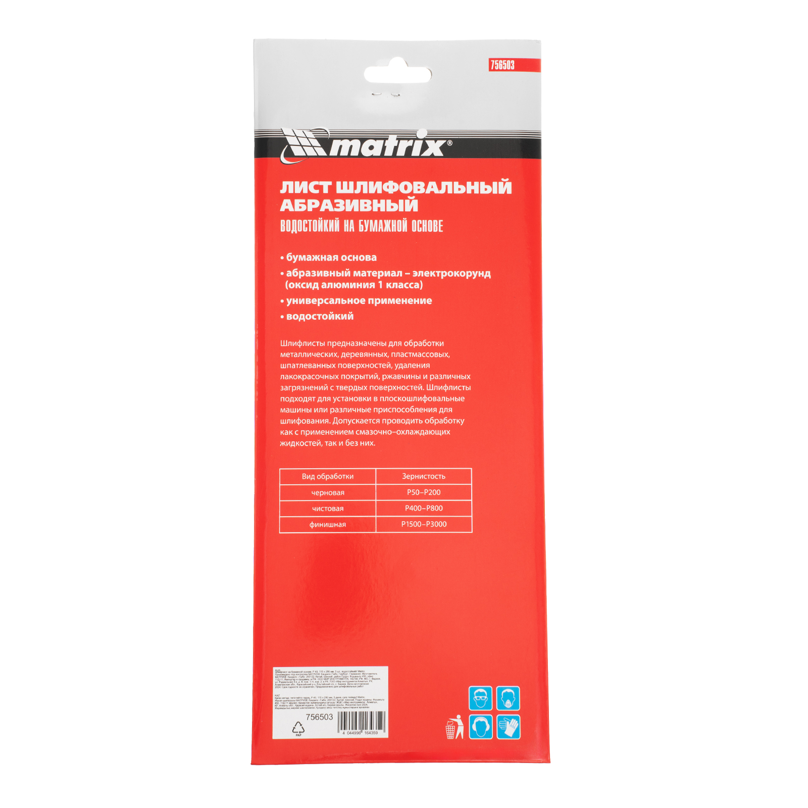 Шлифлист Matrix 756503 размером 115 х 280 мм предназначен для черновой обработки. Устанавливается в плоскошлифовальную машину, а также различные шлифовальные приспособления, либо применяться для ручной обработки. Крупнозернистый электрокорунд Р40 способен справиться со старыми покрытиями, ржавчиной и загрязнениями, подготовкой поверхности к дальнейшей обработке.