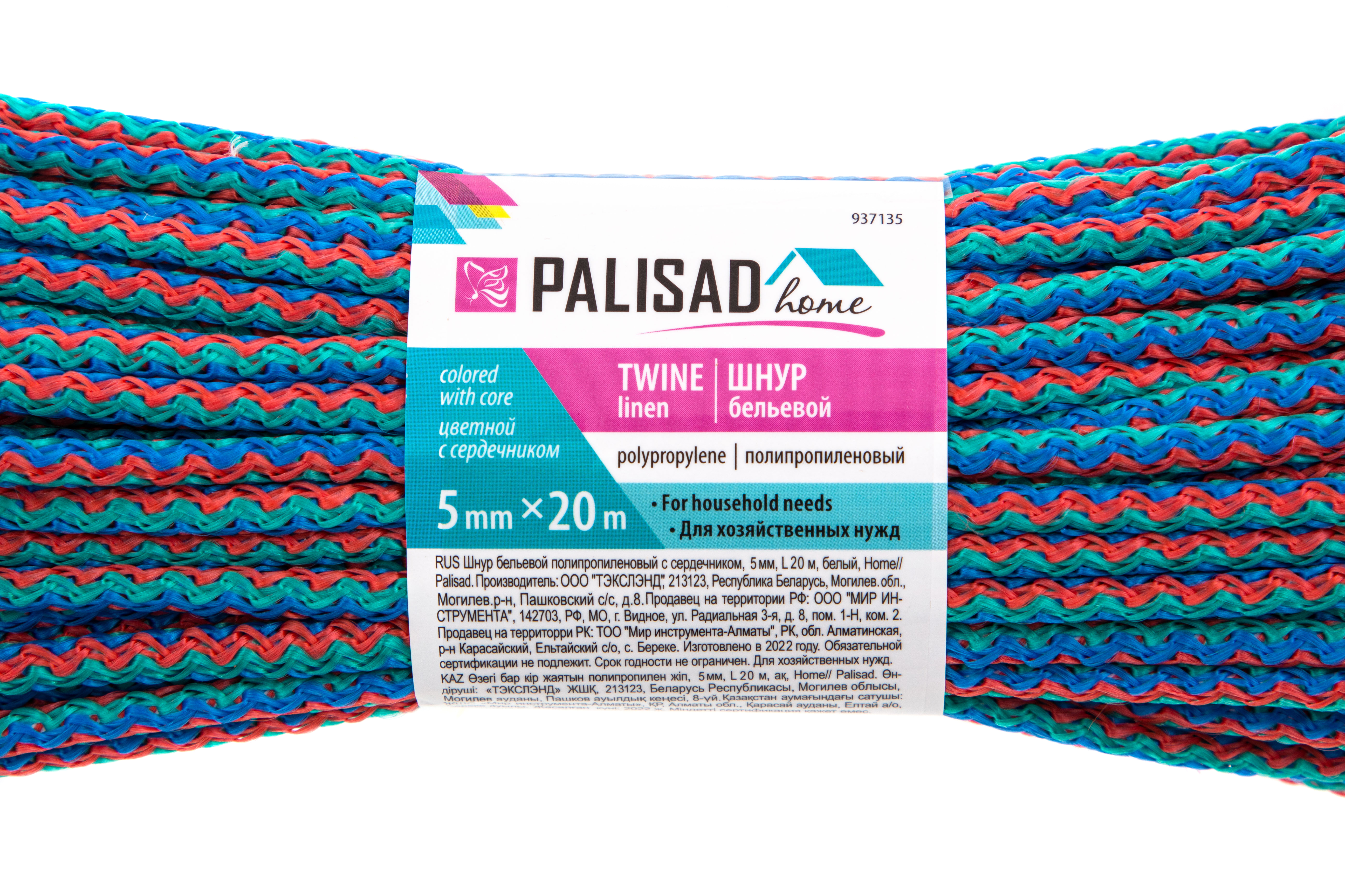 Шнур бельевой полипропиленовый с сердечником, 5 мм L 20 м, цветной, Home Palisad