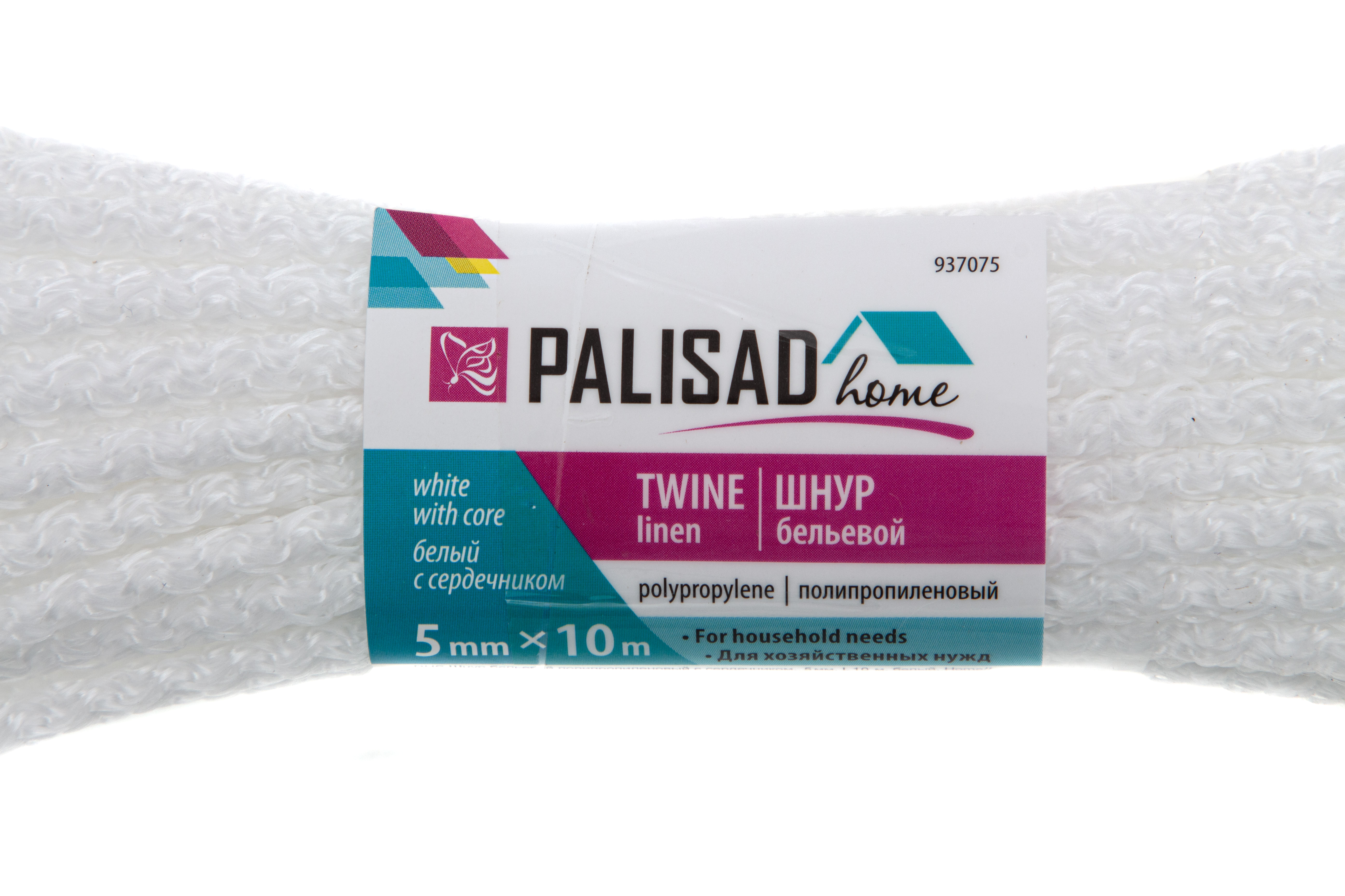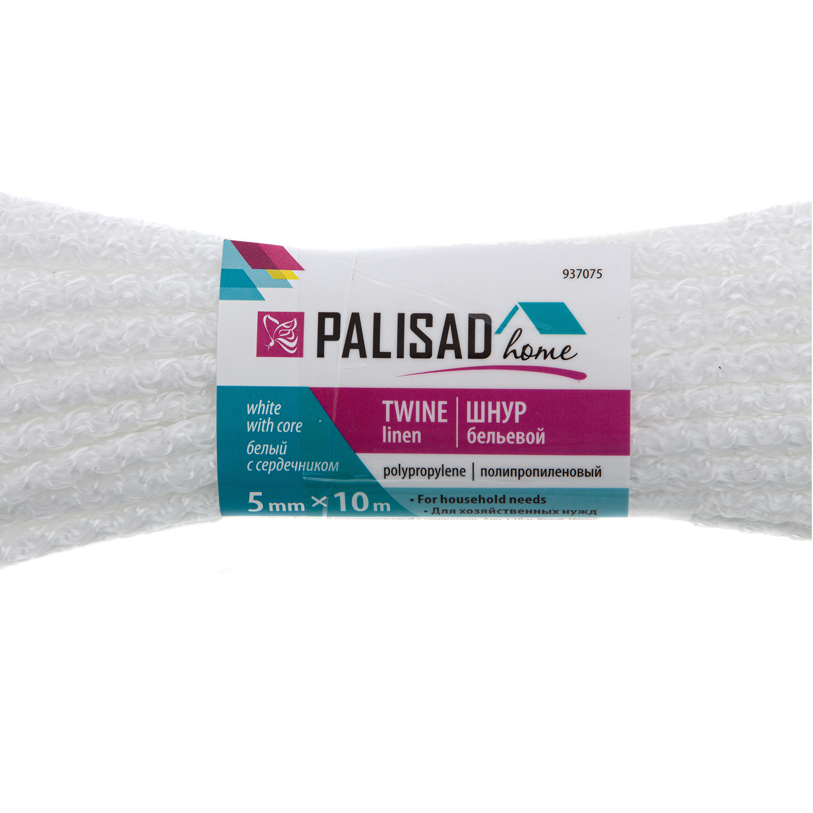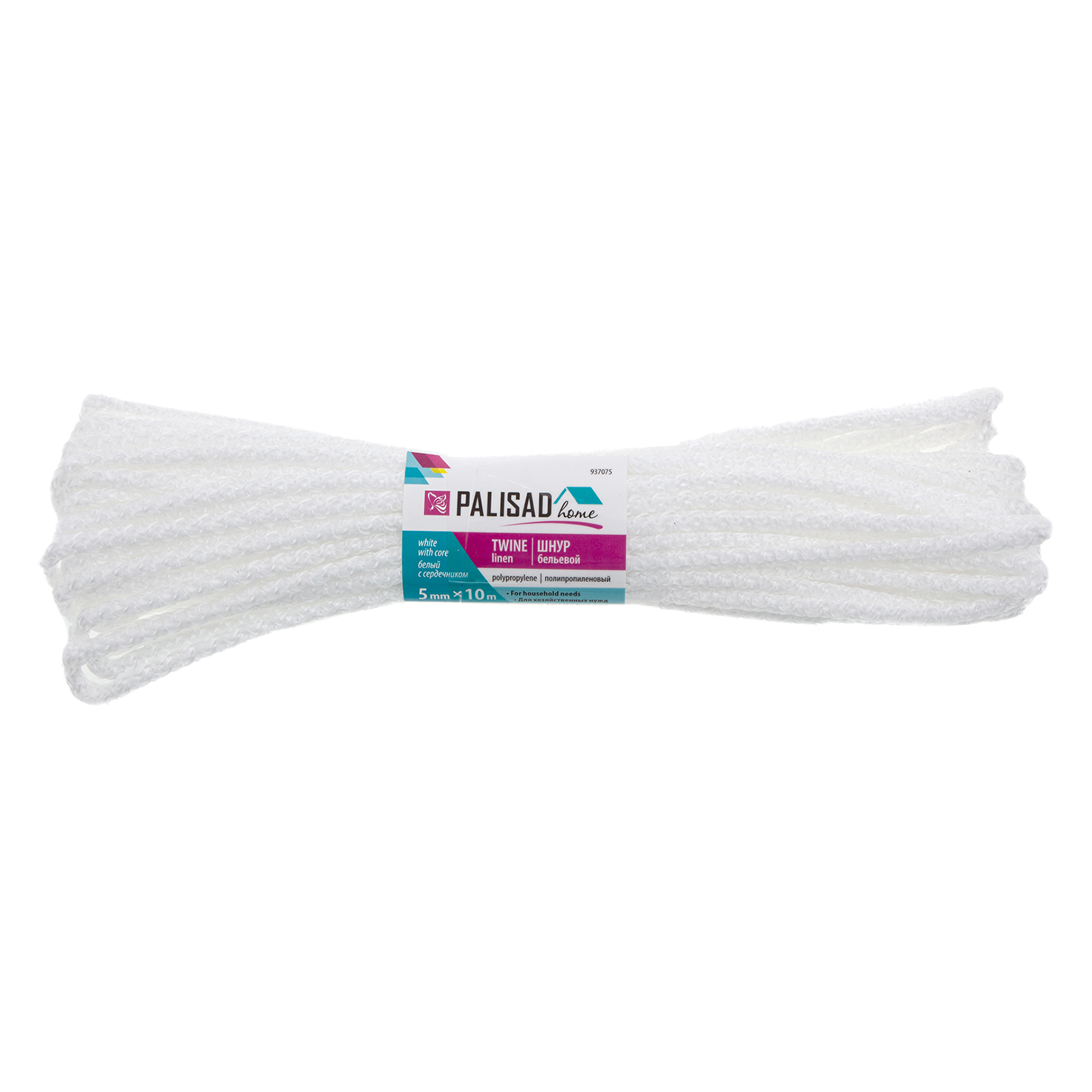 Шнур бельевой полипропиленовый с сердечником, 5 мм, L 10 м, белый, Home Palisad