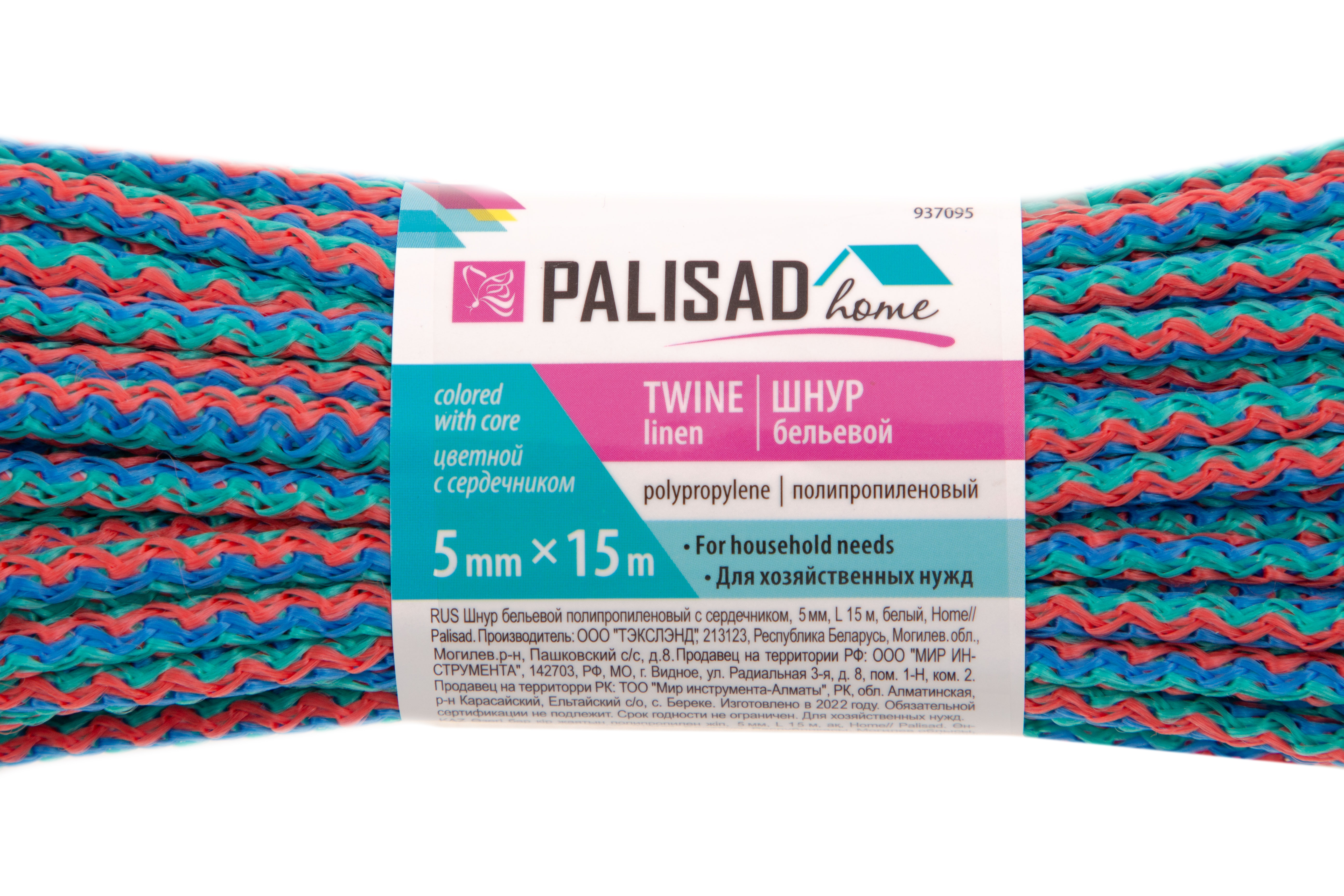 Шнур бельевой полипропиленовый с сердечником, 5 мм, L 15 м, цветной, Home Palisad