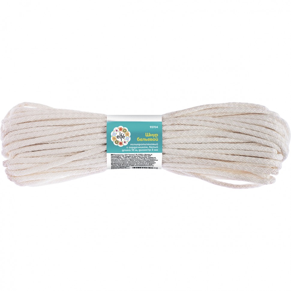 Белый полипропиленовый бельевой шнур Elfe 93708 с сердечником, диаметром 5 мм и длиной 15 м, используется для сушки белья, а также в качестве хозяйственной веревки в быту, на рыбалке или в походе. От обычной бельевой веревки его отличает сердечник из полипропилена, увеличивающий стойкость к нагрузкам. Шнур с полипропиленовой оплеткой выдерживает разрывную нагрузку до 70 кгс, устойчив к растяжению и не провисает под весом мокрых вещей.