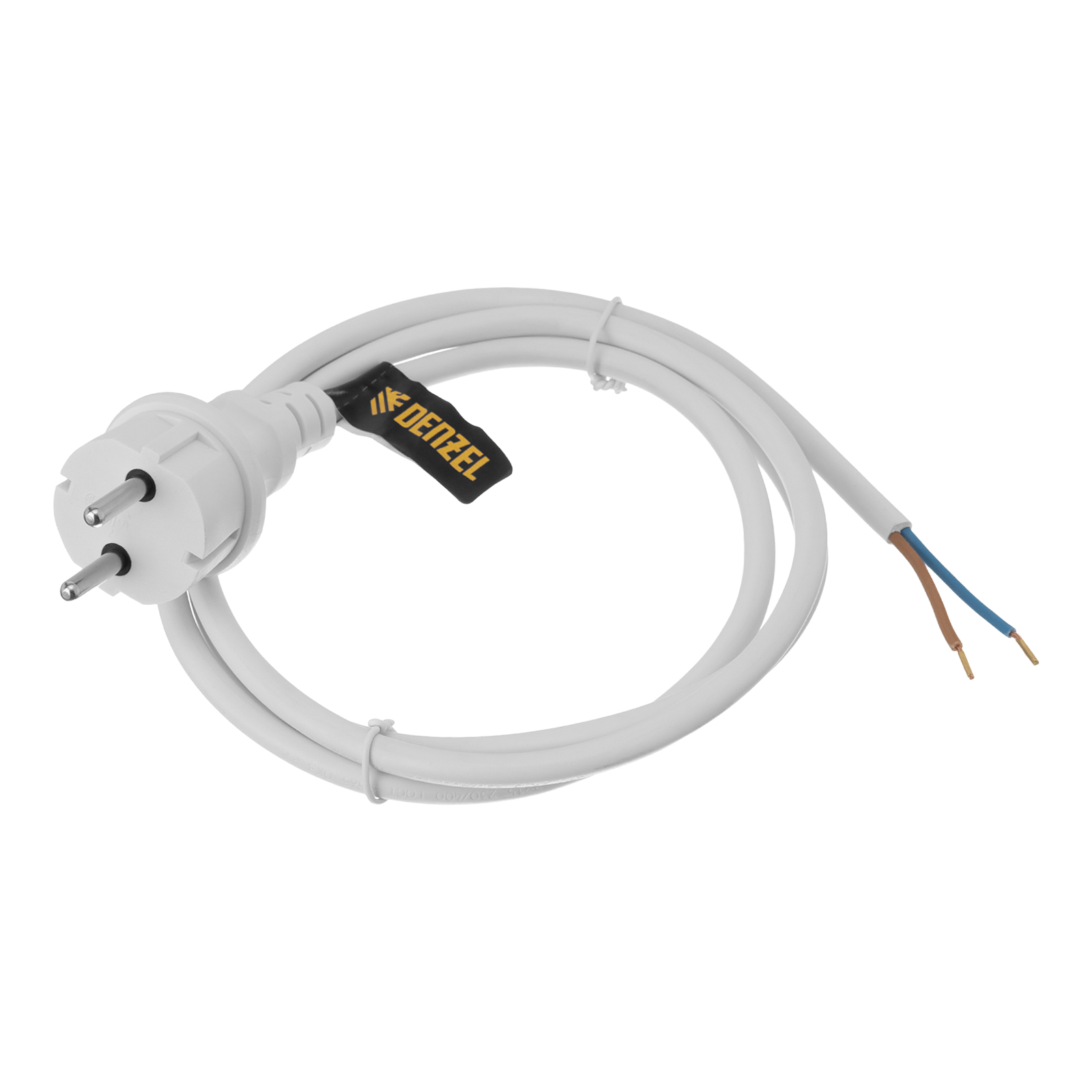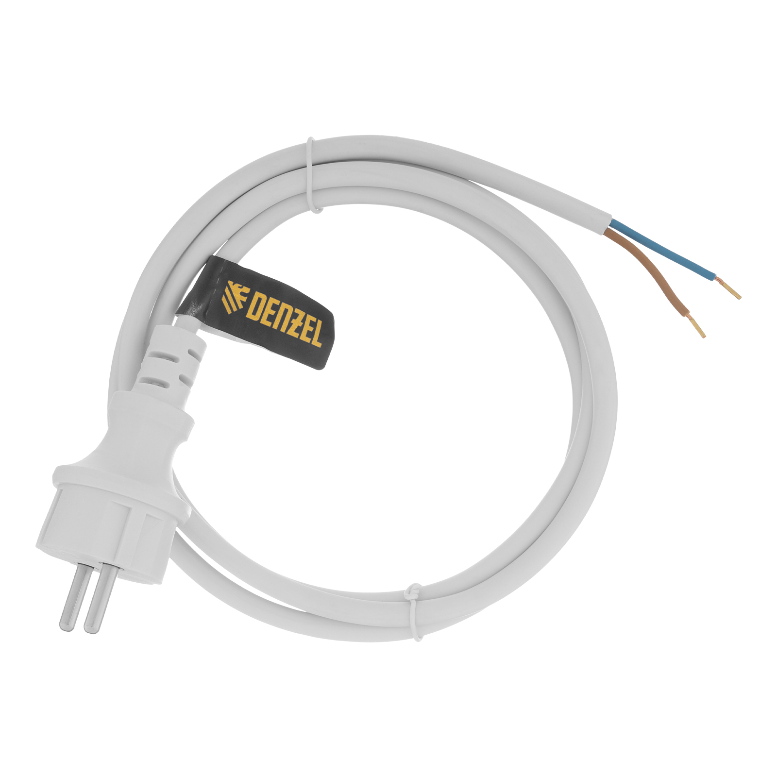 Шнур сетевой Energy Series, ПВС, 1,5 м, 2 x 1,5 мм, с неразборной вилкой, белый, Denzel