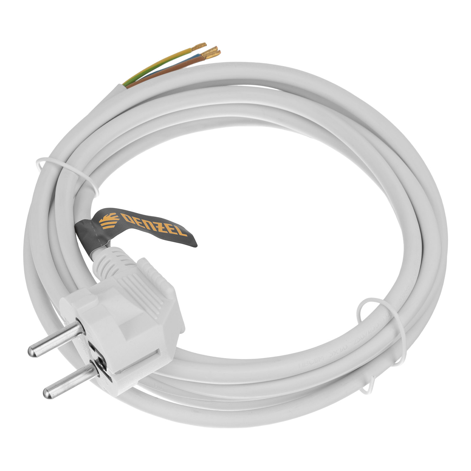 Белый сетевой шнур Denzel Energy Series 37666 с кабелем ПВС сечением 3 x 1 мм и длиной 3 м, с неразборной вилкой, предназначен для подключения к сети электроприборов мощностью до 3500 Вт. Для смотанного кабеля максимальная мощность потребителя составляет 1750 Вт. Шнур можно использовать для самостоятельного подключения прибора или замены вышедшего из строя провода. Сделано в России.