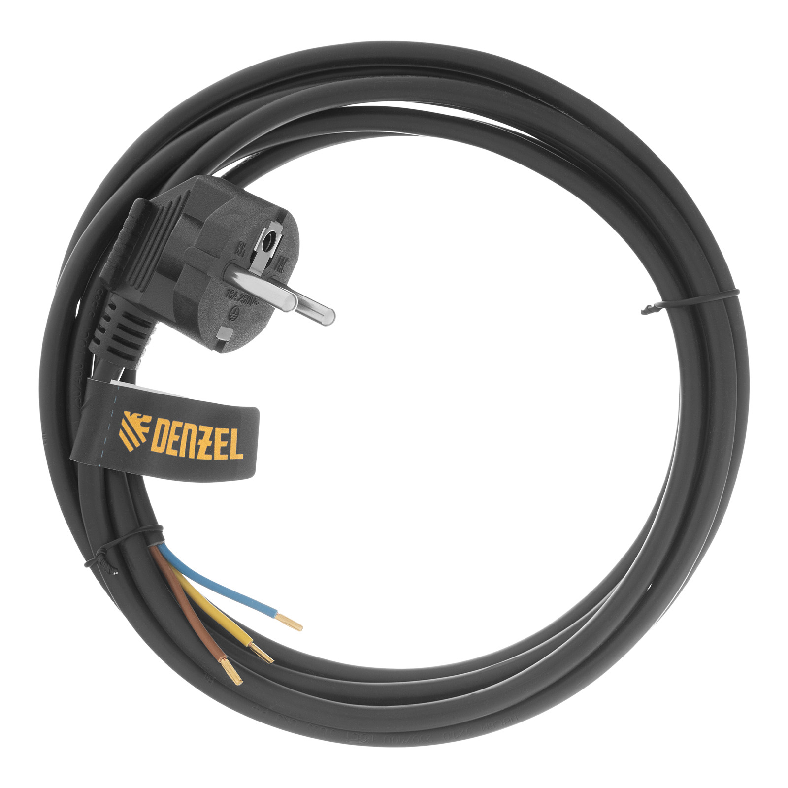 Шнур сетевой Energy Series, ПВС, 3 м, 3 x 1 мм, с неразборной вилкой, черный, Denzel