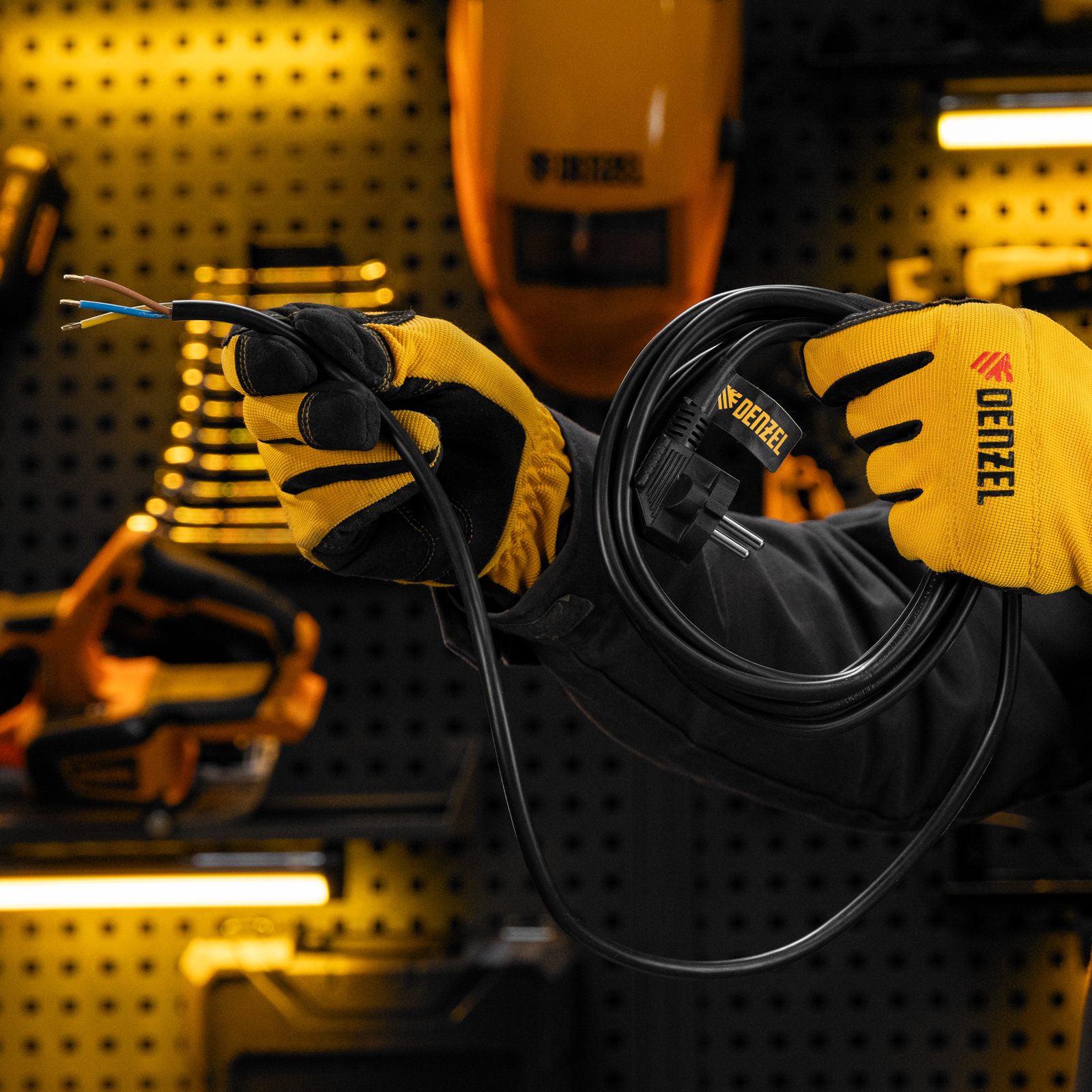 Шнур сетевой Energy Series, ПВС, 3 м, 3 x 1,5 мм, с неразборной вилкой, черный, Denzel