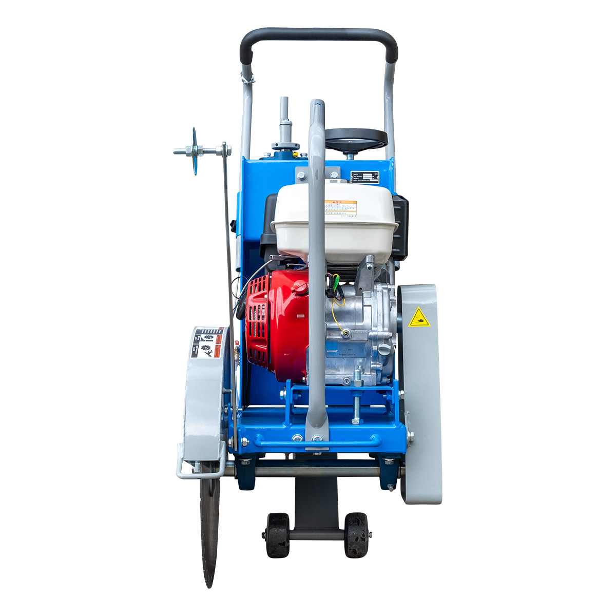 Шовнарезчик обладает крупными габаритами 1550 × 655 × 1200 мм и солидным весом в 200 кг, что обеспечивает его устойчивость и стабильность на любой поверхности. Размер топливного бака — 6,5 литров, позволяет долго работать без дозаправки.
