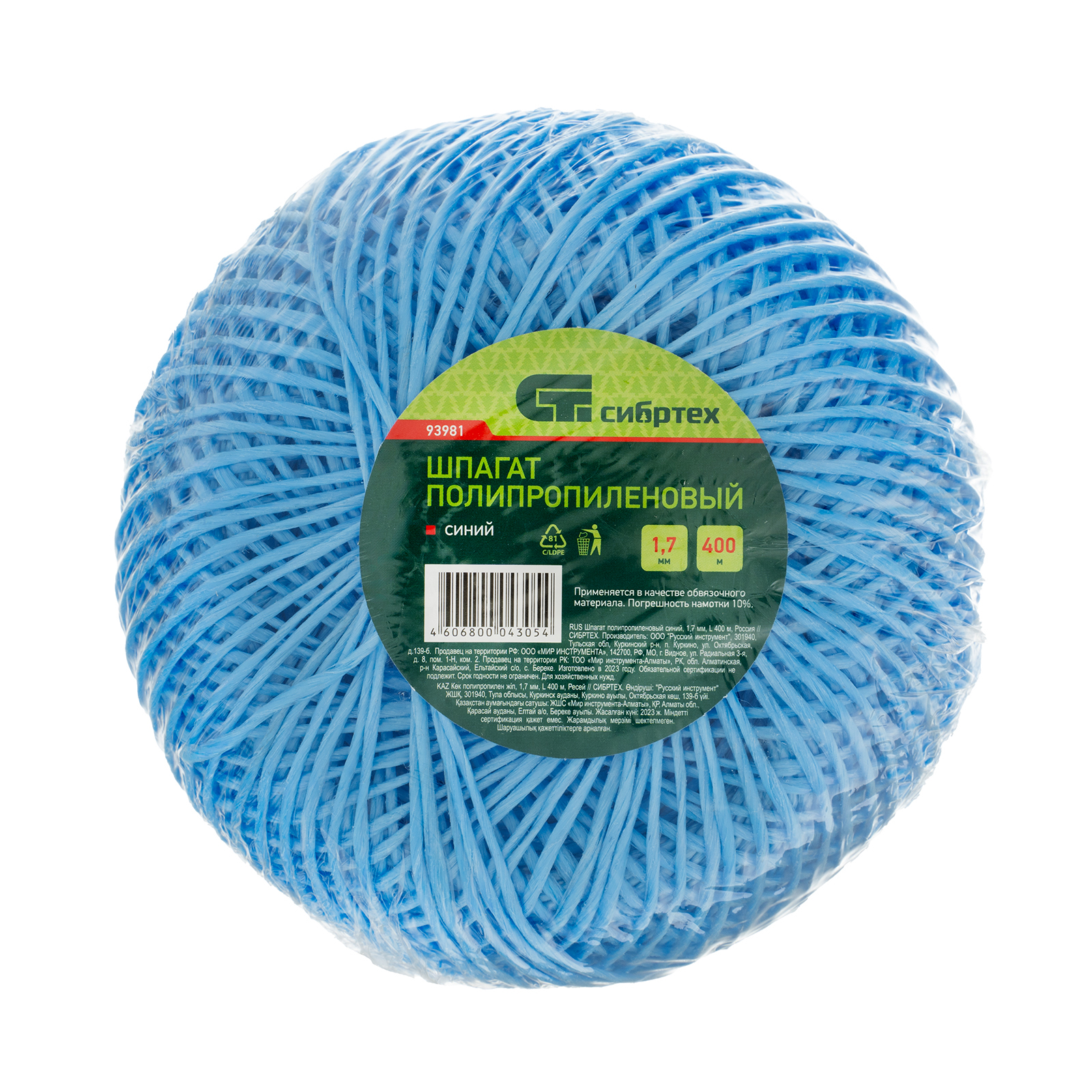 Шпагат полипропиленовый синий, 1.7 мм, L 400 м, Сибртех