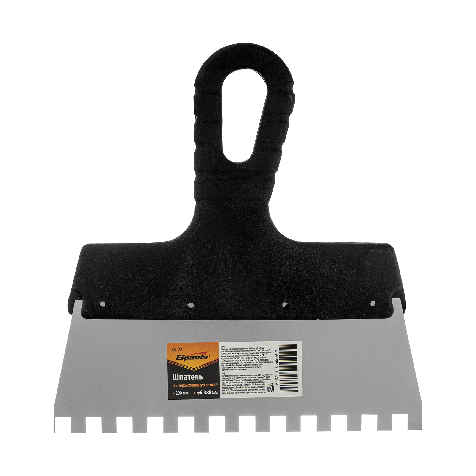 Шпатель из нержавеющей стали, 200 мм, зуб 8 х 8 мм, пластмассовая ручка Sparta
